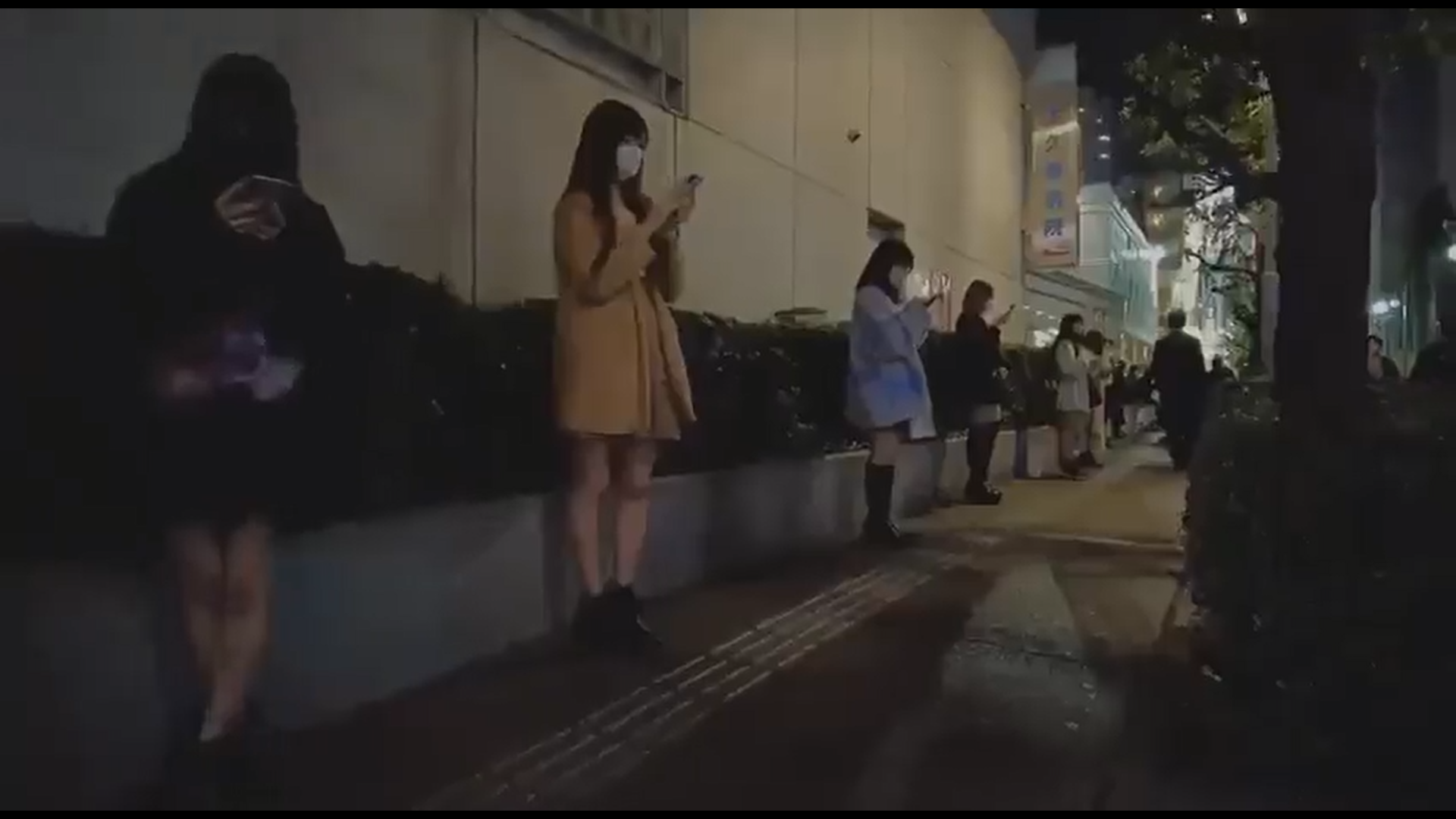 【橙訊】近日網上瘋傳一片日本街頭的影片,該段影片拍攝東京歌舞伎町的大久保醫院附近,看似平平無奇的街道,卻見到一班少女大約每隔數米整齊站立,奇異的場面令網民好奇她們在做甚麼。