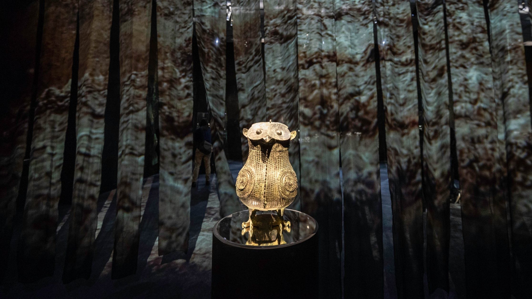 青銅鴞尊此前在展出中似乎周圍沒有防護設施。