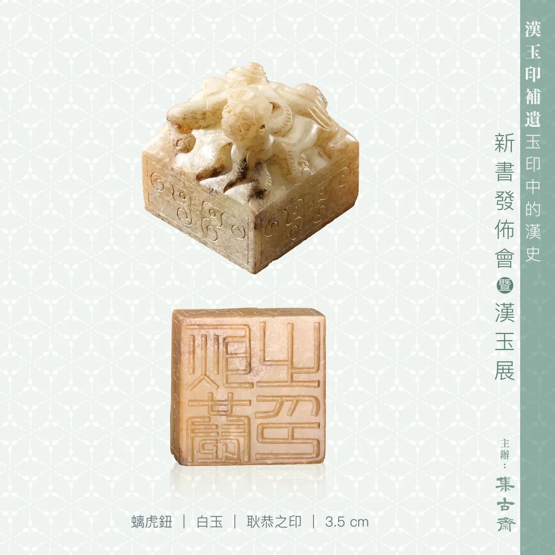 【橙訊】集古齋將於5月20日至22日展覽點趣軒陳文巖、羽英華伉儷精品古漢玉印典藏,同時發布新書《漢玉印補遺——玉印中的漢史》,書中詳細介紹陳氏伉儷多年珍藏,每件藏品均經二人細心研究,圖文並茂,供古玉收藏者藉鑒,並聊以補館藏之遺。