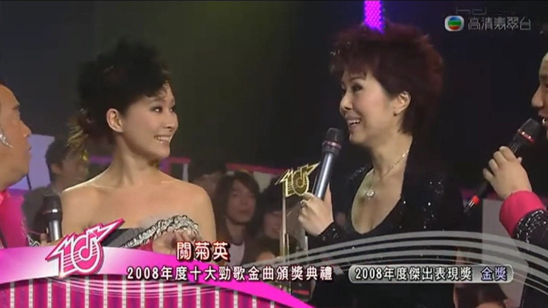 說到頒錯獎便不得不提關心妍,在2009年1月3日播出的《2008年十大勁歌金曲頒獎典禮》,主持關菊英宣布自己獲得傑出表現金獎後,其他歌手向關菊英拍掌,突然關心妍由座位中走下來與關菊英擁抱,並從其手中奪走獎座,令在場的主持不知所措,關菊英更問:「是不是專登的。」。關心妍經過他們提醒後,才發覺自己聽錯名,結果只好掩面狂笑,並一臉尷尬地走回座位。