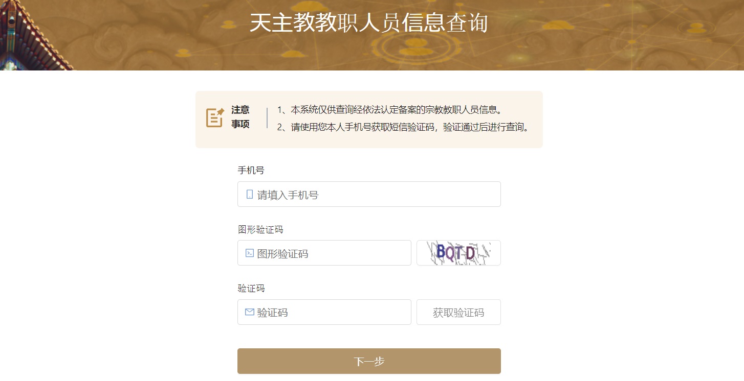 市民如要查詢,可以登録系統,之後輸入自己手機號碼,獲取短信驗證碼後可登錄系統。登錄系統後,被查詢人的身份證姓名和宗教稱謂兩者必填其一;身份證號碼和所在地區(精確到地級市或直轄市的區)兩者必填其一。查詢系統將根據用戶輸入的查詢條件,在系統數據中進行查詢。如果被查詢人確為經依法認定備案的宗教教職人員,系統將顯示該宗教教職人員相關信息。如查詢不到,系統將提示未找到該人員信息。
