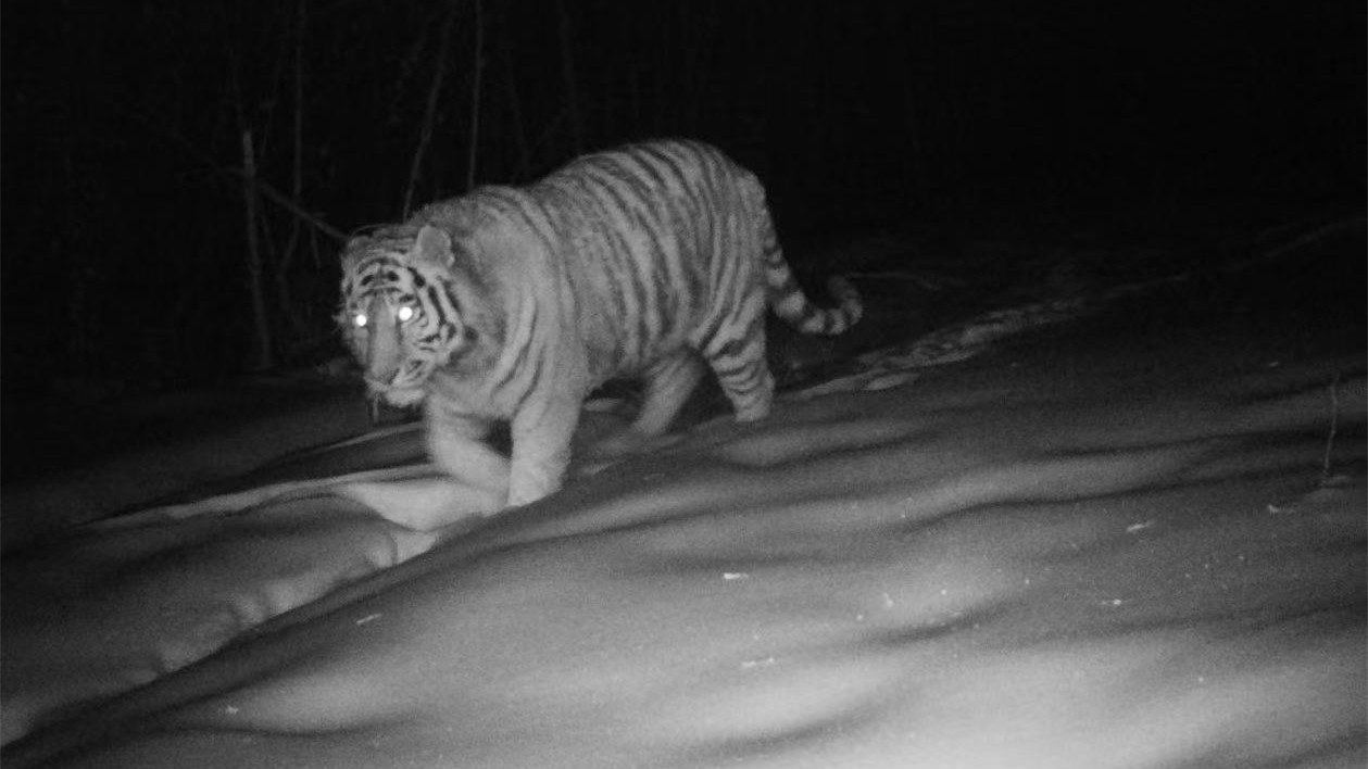 放置在大興安嶺地區的紅外線相機,再次發現野生東北虎蹤影。