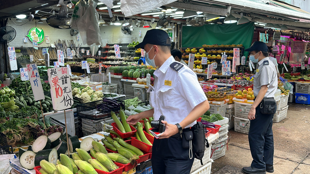 食環署下午到牛池灣街市執法,期間有警員在場協助。
