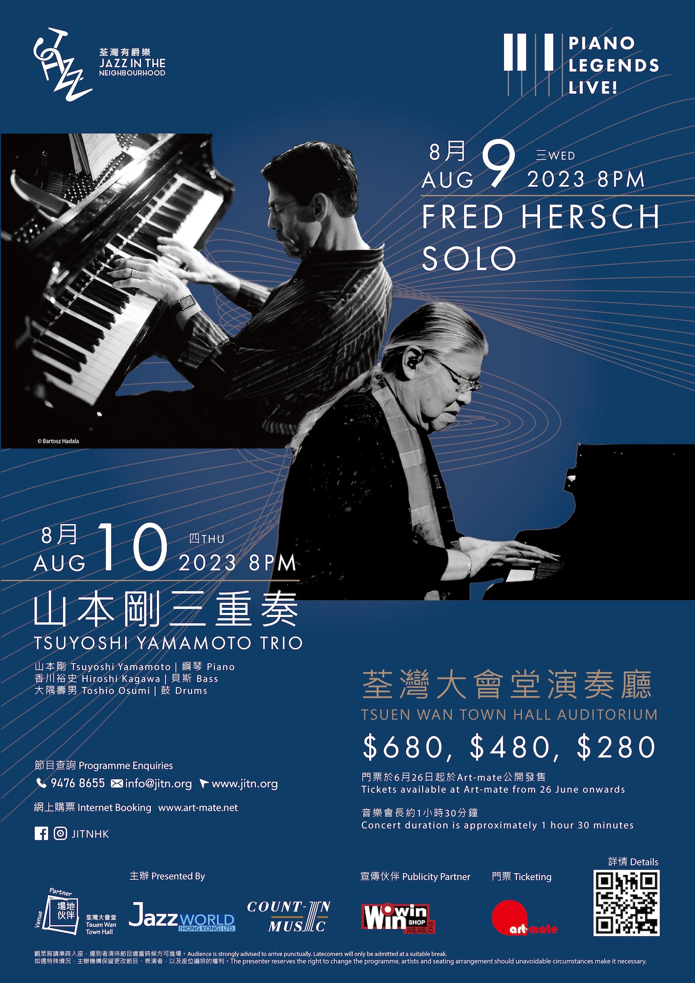 【橙訊】「荃灣有爵樂」近日公布新的節目主題「Piano Legends LIVE! 」,將舉辦兩場鋼琴音樂會,分別邀請到兩位傳奇爵士鋼琴家Fred Hersch及山本剛訪港並首度於荃灣大會堂音樂廳演出。