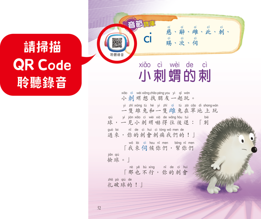 4. 書中每個音節和故事都附普通話故事錄音,邊聽邊看,讓孩子掌握準確的普通話讀音。