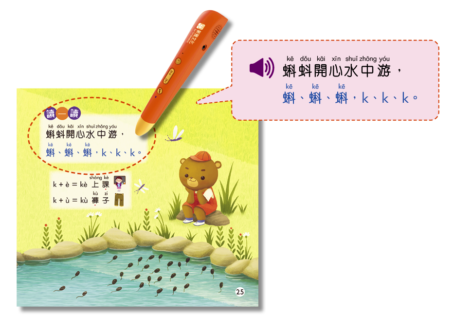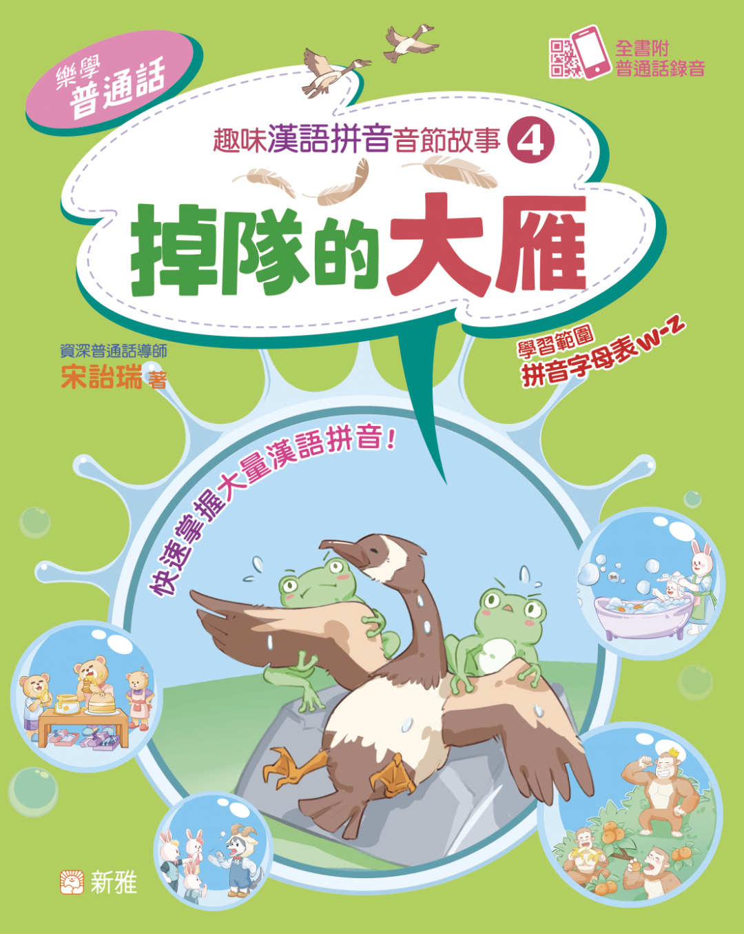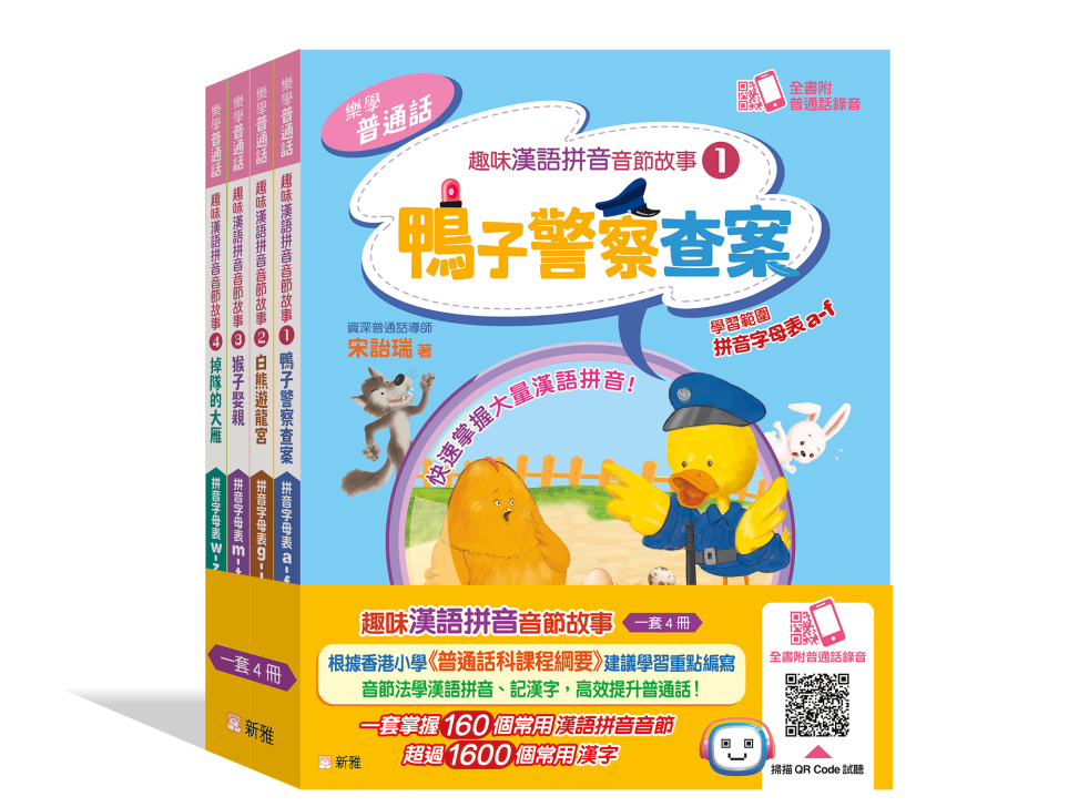 本港第一套利用「音節學習法」來教導小朋友快速學習大量漢語拼音和漢字的故事書。根據香港小學《普通話科課程綱要》建議學習重點編寫,一套掌握160個常用漢語拼音音節,超過1600個常用漢字。全書附帶普通話錄音,可邊聽邊學。