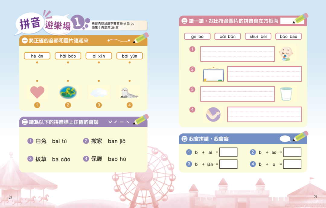 2. 書中附「拼音遊樂場」,以有趣的拼音練習鞏固學習內容。