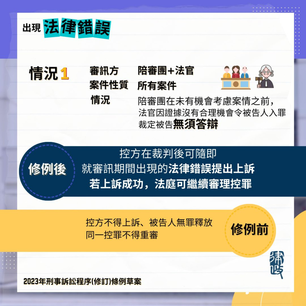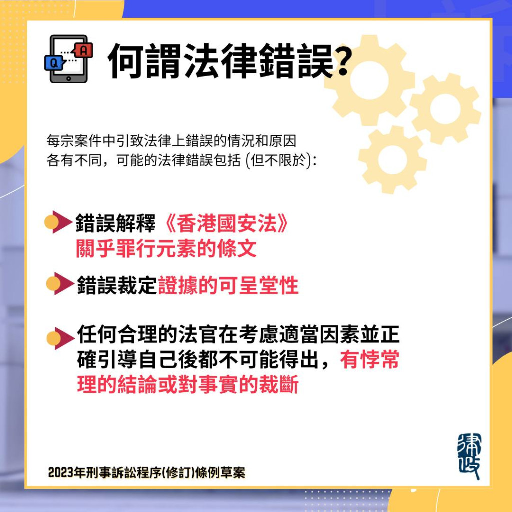 林定國表示,針對高等法院原訟法庭案件中可能出現法律錯誤,導致被告誤被無罪釋放,律政司向立法會提出修例,讓控方增設上訴機制, 建議在有陪審團的刑事審訊中,控方可就「無須答辯」引伸被告無罪的命令,提出上訴;以及在3名國安法法官審理的國家安全案件,控方可就無罪裁決,提出「案件呈述」上訴。