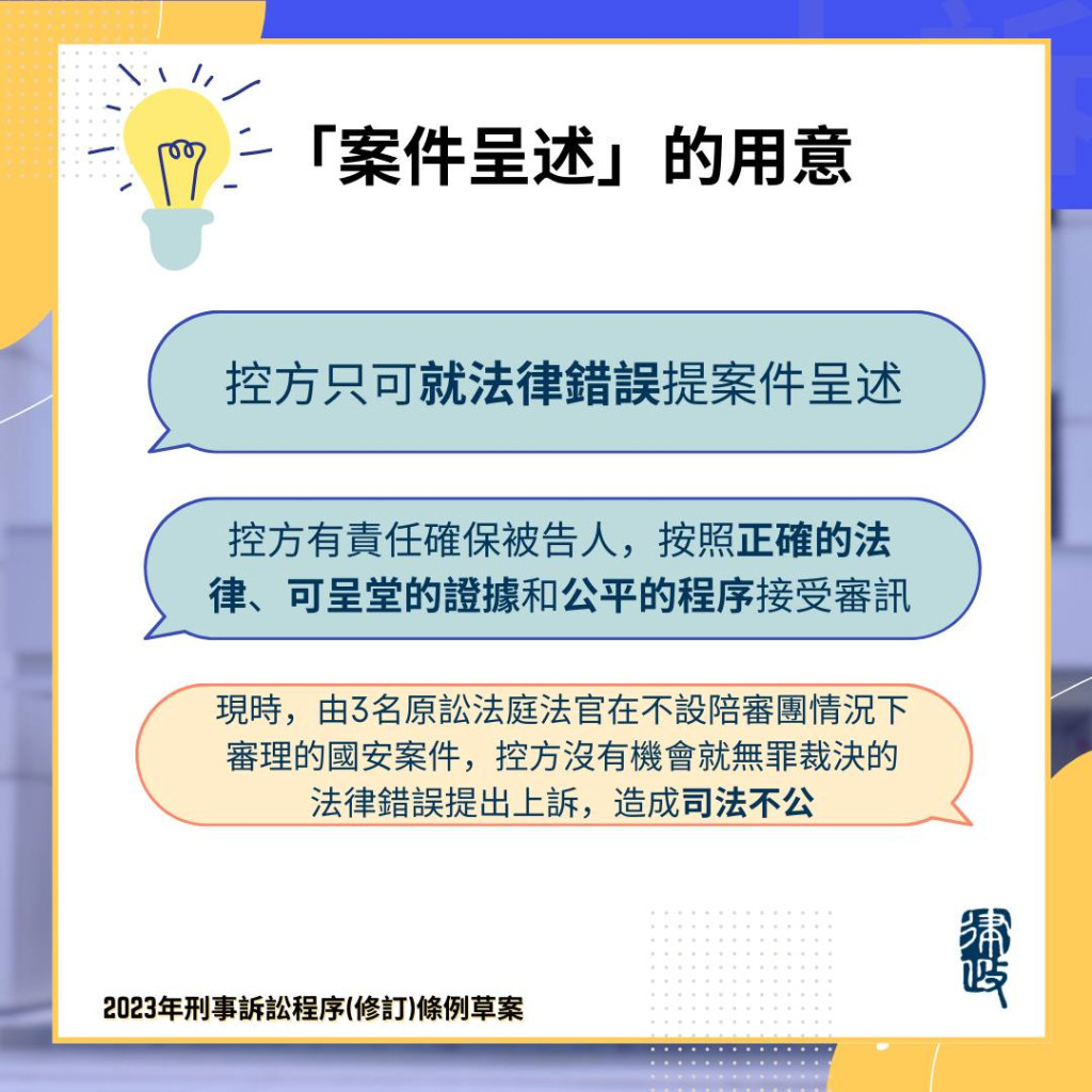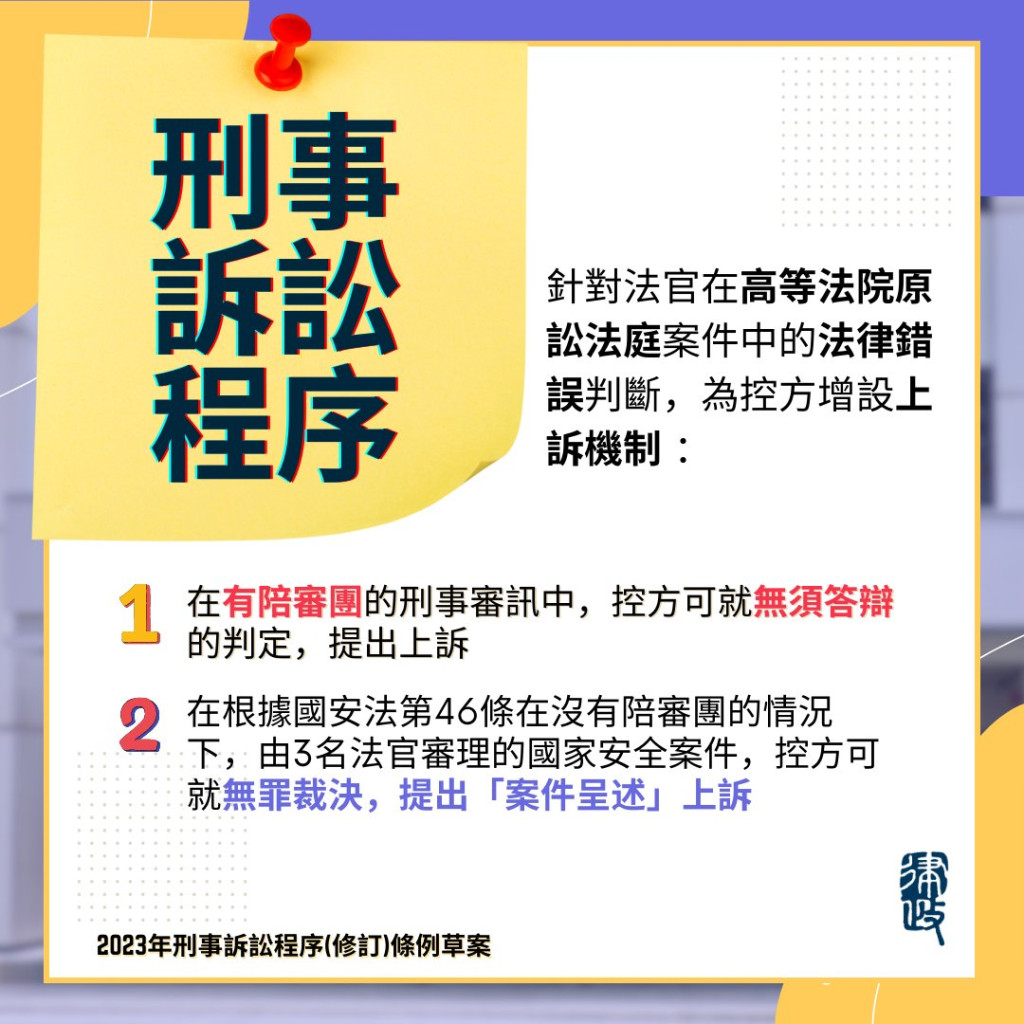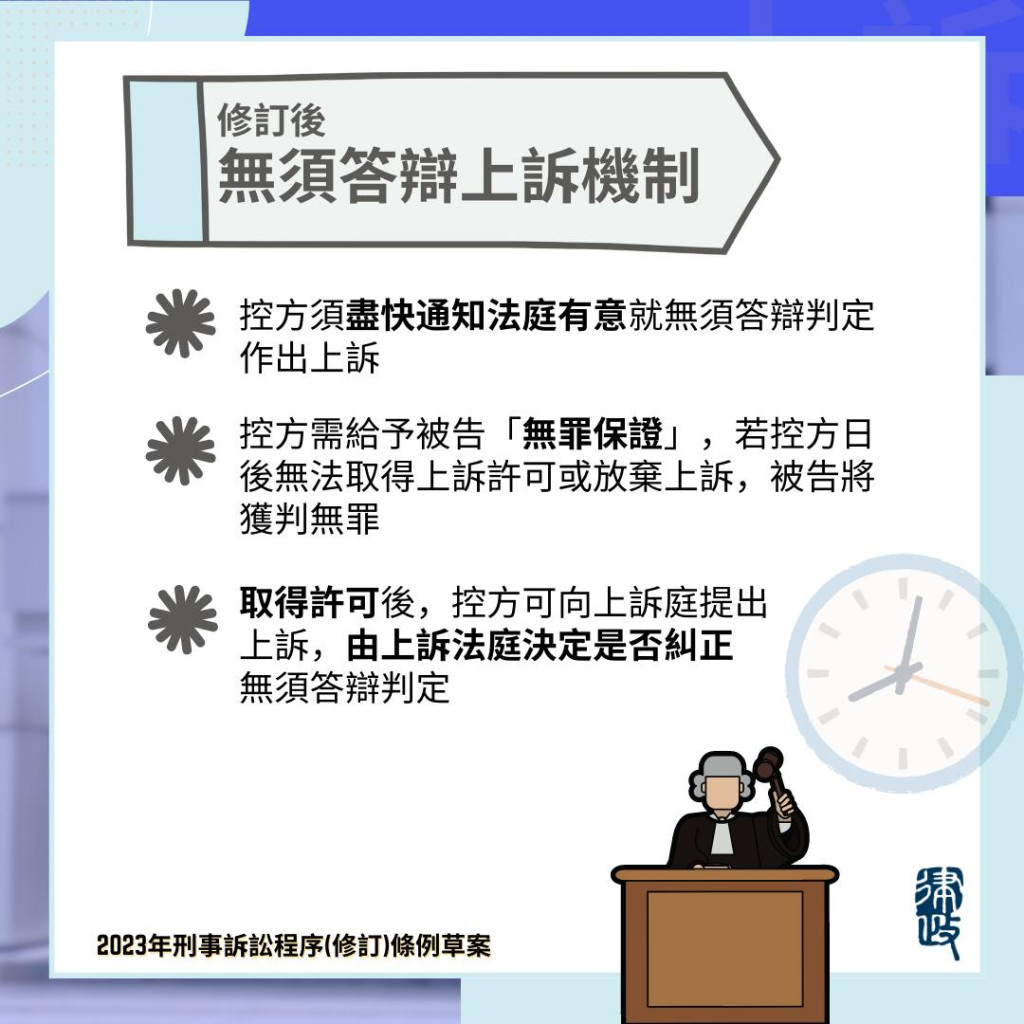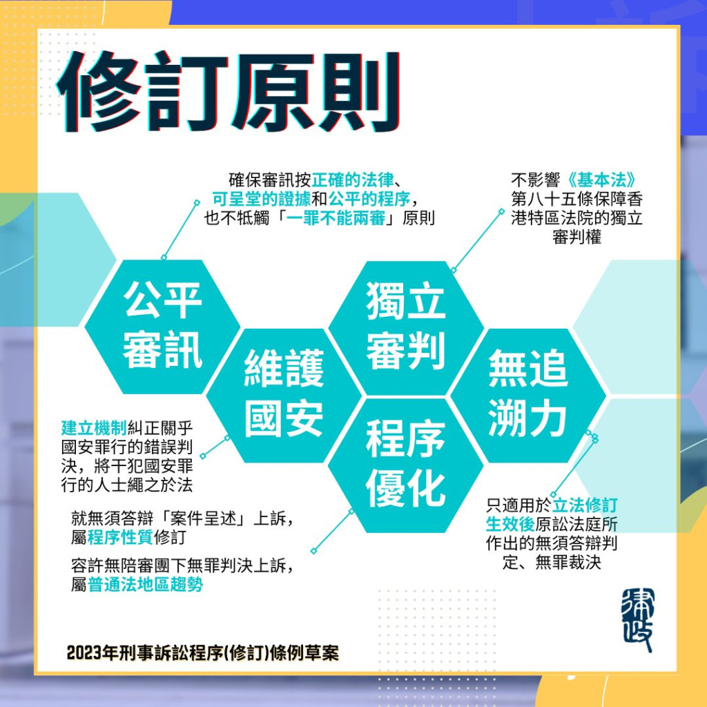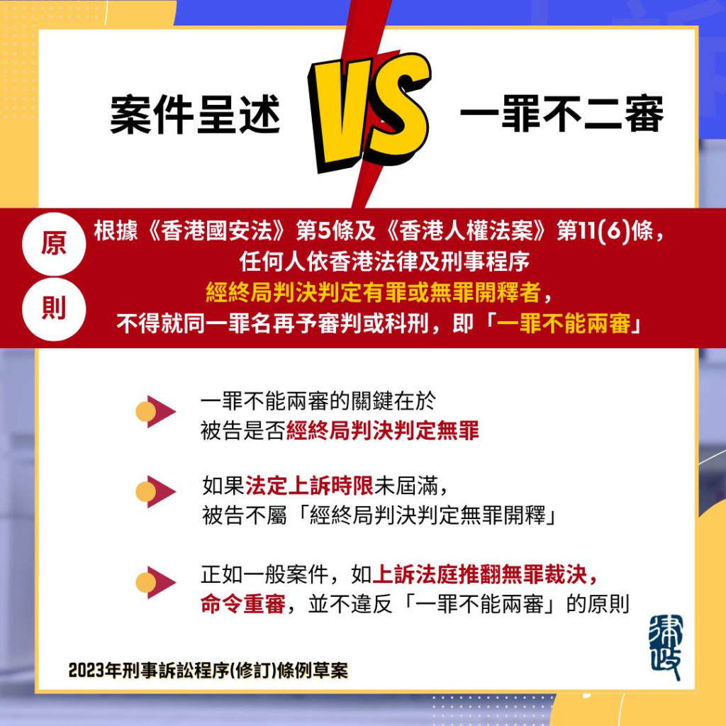 【橙訊】《2023年刑事訴訟程序(修訂)條例草案》上月於法案委員會完成審議,周三(12日)恢復二讀辯論及三讀。律政司司長林定國今日(9日)在社交網站上載圖表,解說修例重點。