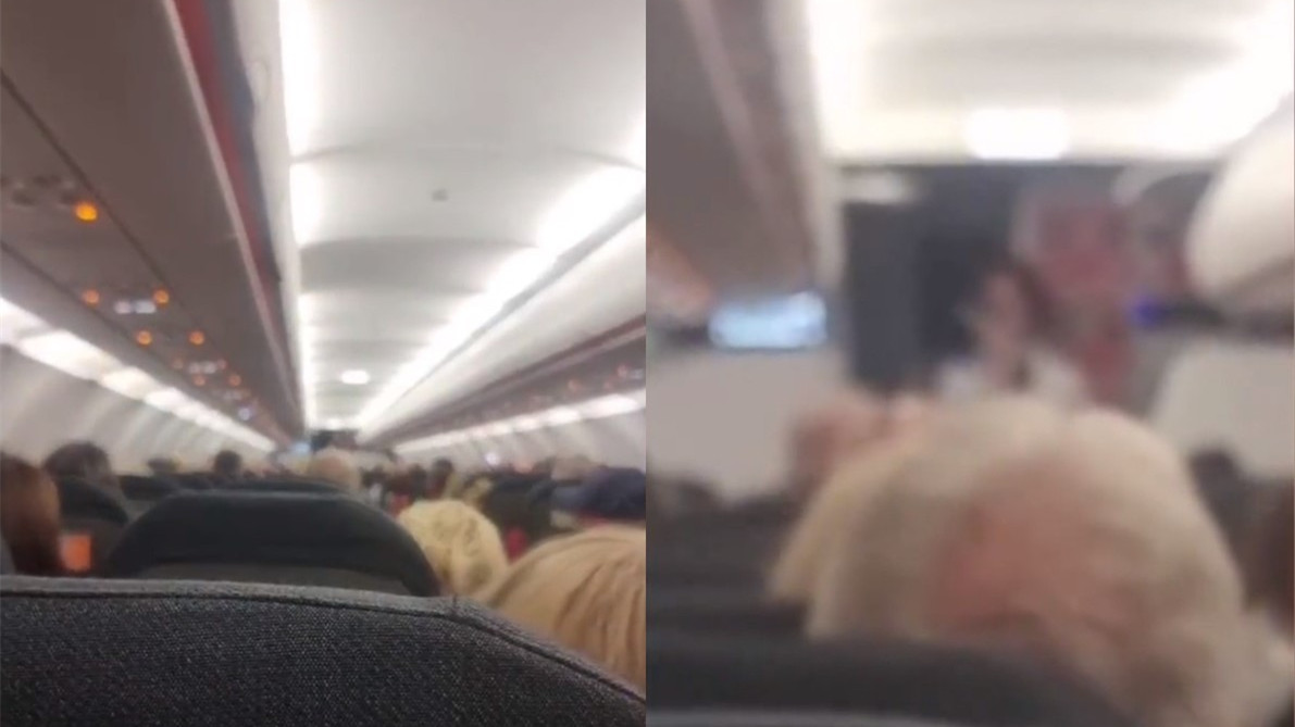 有機上旅客拍下機長向乘客廣播,要求旅客自願下機讓航班順利起飛。