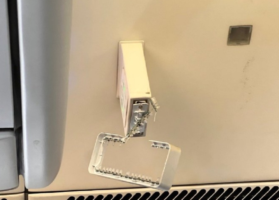 艙頂指示牌遭撞壞。