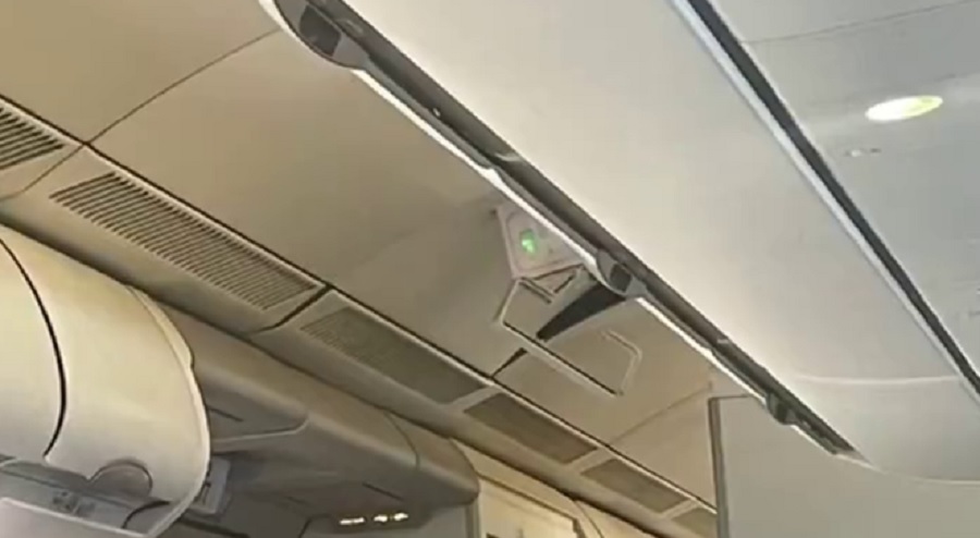 上海飛北京國航航班遇顛簸,艙頂指示燈也被撞壞了。