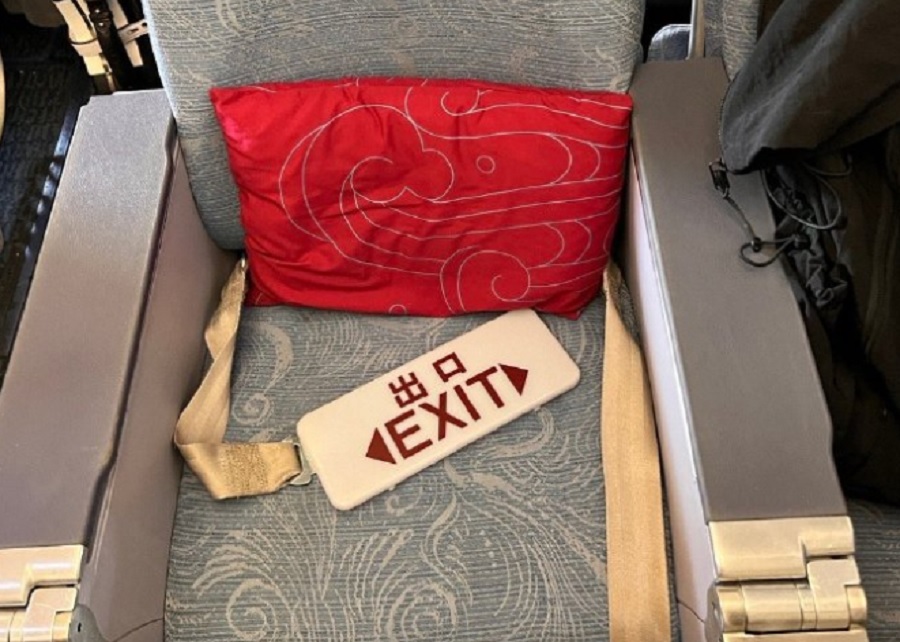 艙頂出口指示牌也掉了下來。