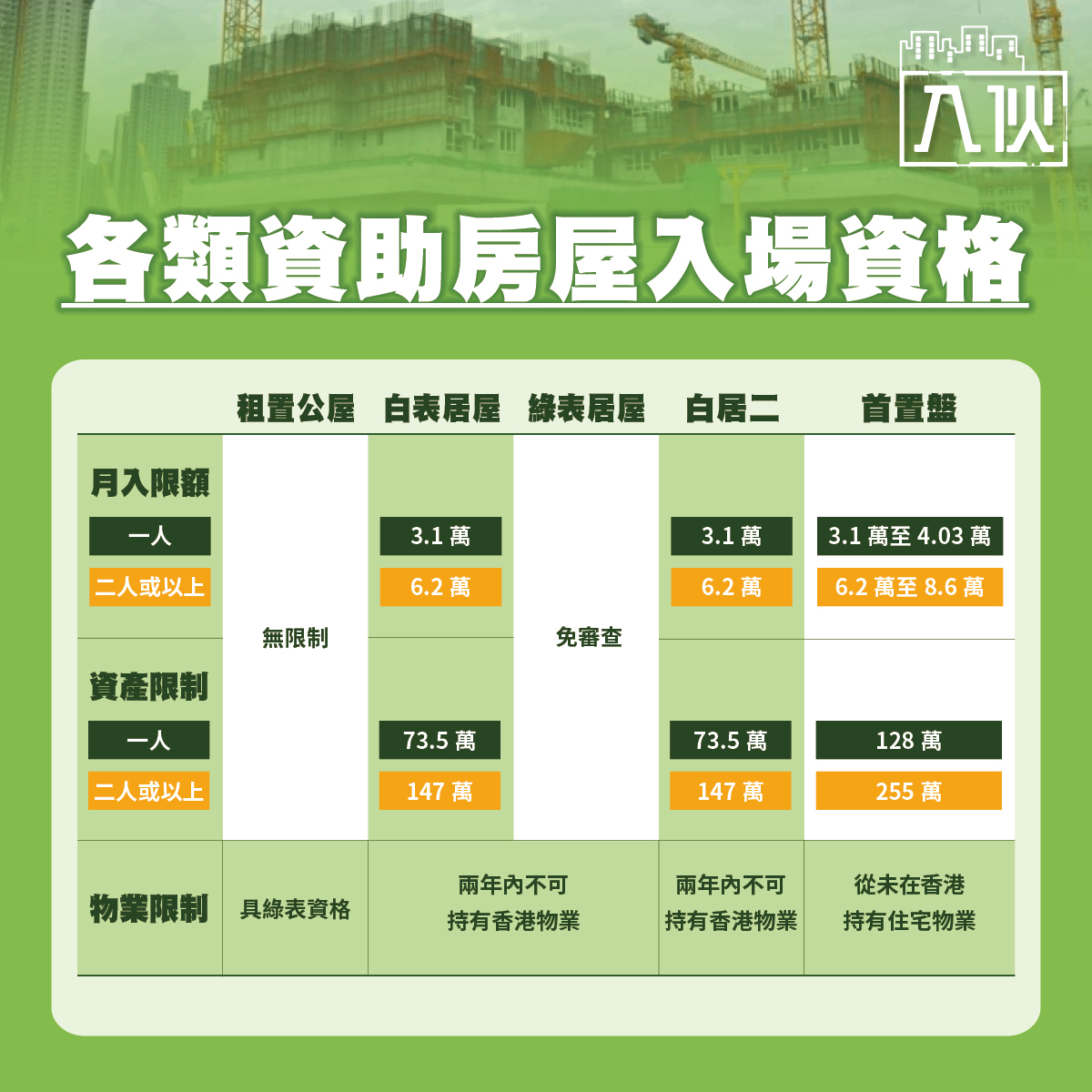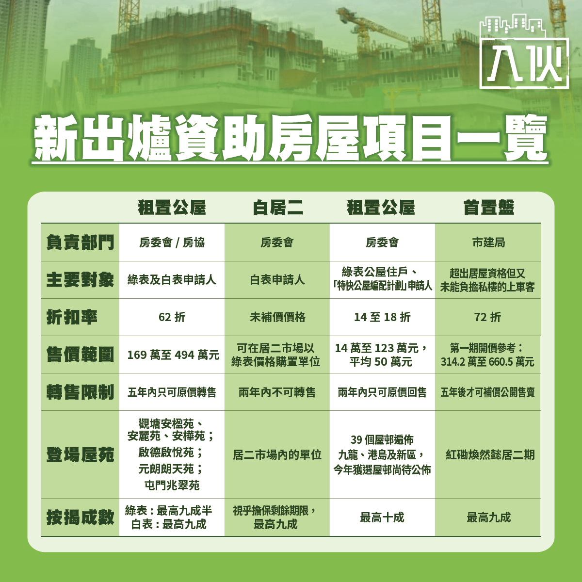 本港樓價高企,但收入不夠高並非與上車無緣,各類型資助房屋為港人帶來一線生機。最近新居屋已公布申請日子、另一邊廂首置盤亦傳來新消息,引來不少反應和查詢。今次小編將重點介紹置業階梯中四類資助房屋,包括居屋、白居二、租置公屋及首置盤,皆因各類計劃均快將接受新申請,申請資格、入場門檻各有不同,你又有沒有符合哪一種呢?