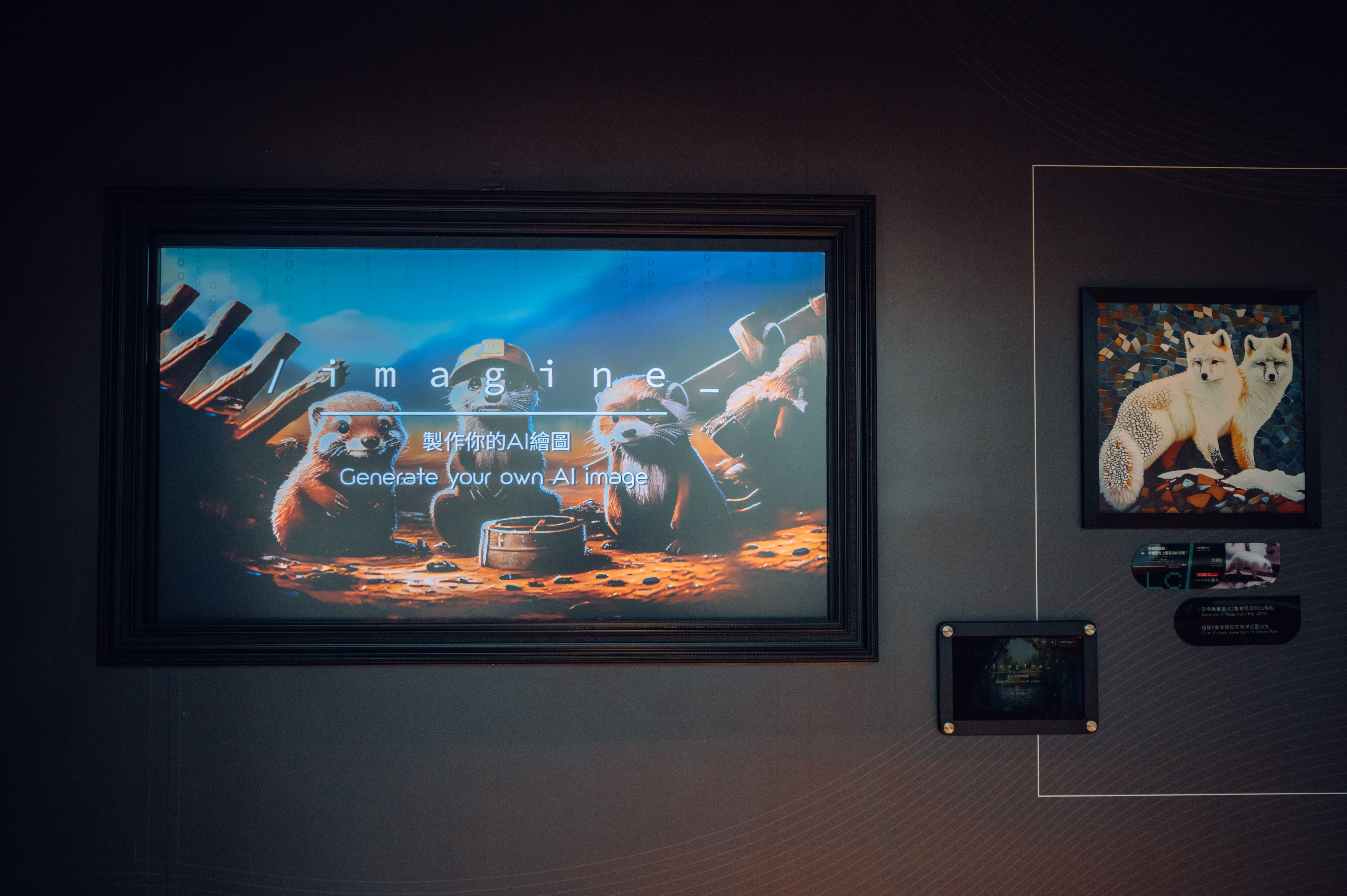 展館設有AI互動裝置,訪客只需在裝置上輸入簡單指令就可以各種動物作主題,創作畫作。
