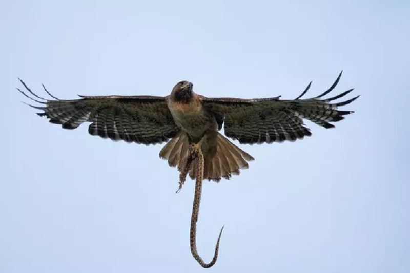 老鷹捕捉活蛇示意圖。