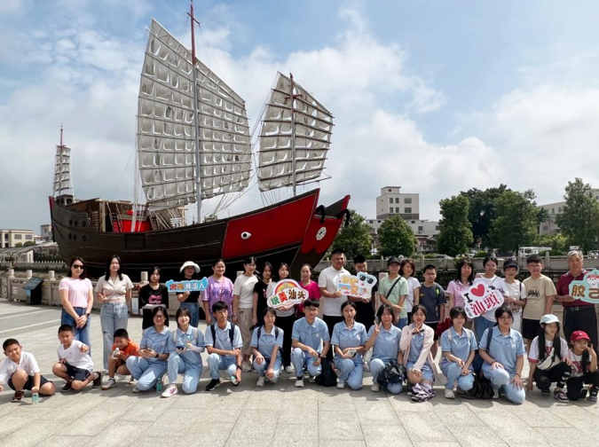 8月21日,體驗活動一行人首站便來到位於澄海區的漳林古港,這裡停泊着一艘仿古紅頭船。一百多年前,就是這艘紅頭船滿載著貨物從漳林古港揚帆啟航,承載着千萬潮汕人的「創業夢想」遠渡重洋。從香港趕來參加活動的潮籍家長陳女士表示,「因為女兒出生在香港,家鄉話幾乎是不會說的,所以每一年都會盡量帶她回來,想要女兒多聽聽家鄉話,讓她知道自己的『根』在哪裏。」離開樟林古港後,成員們就乘車前往陳慈黌故居,在百年僑宅中領略僑鄉遺風。隨後,成員們又探訪了汕頭市僑批文物館與小公園騎樓等地。小公園騎樓現場還設有僑批寫作體驗區。成員們積極體驗僑批創作,書寫對家鄉與親朋好友的祝福。