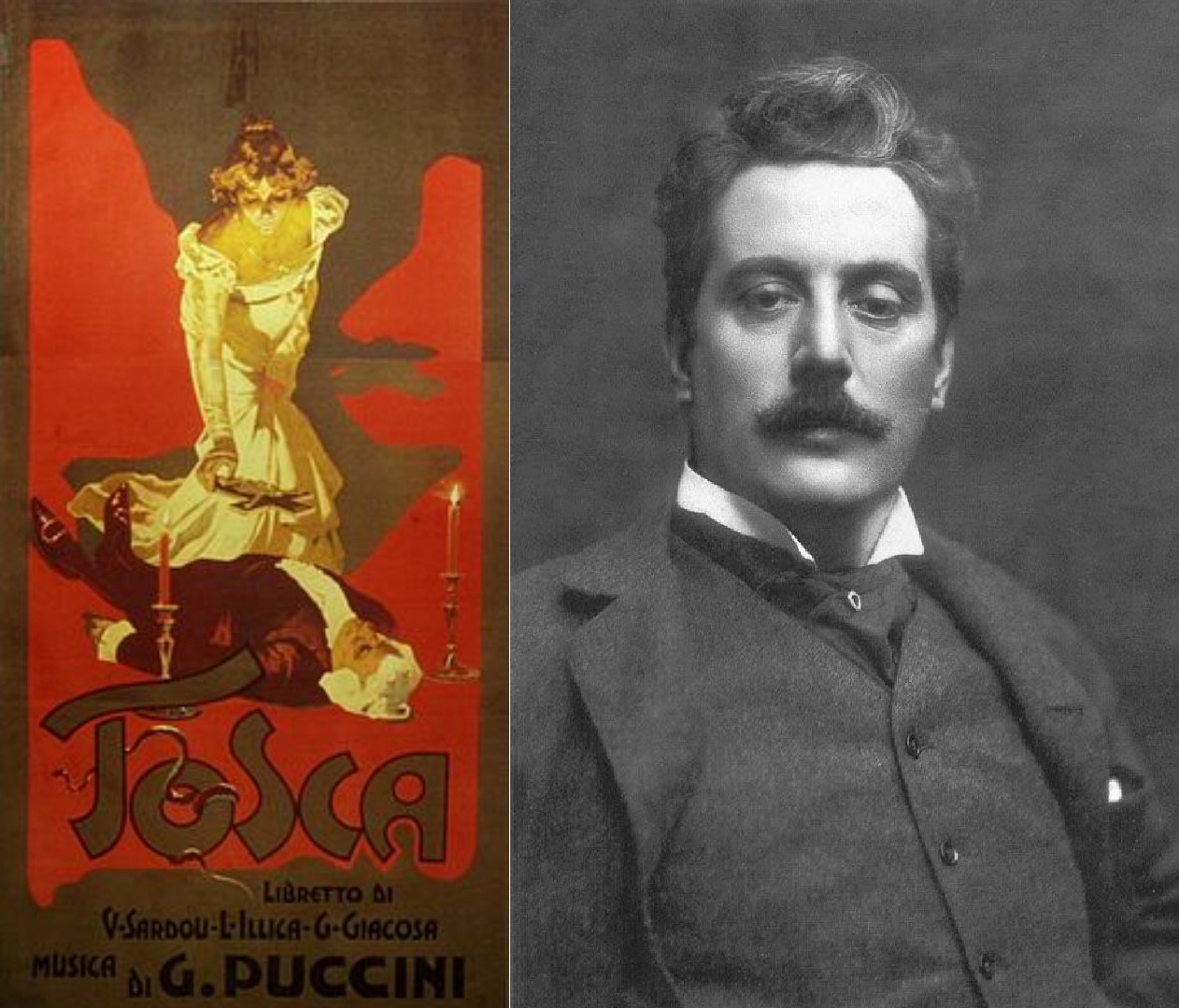 左:《托斯卡》演出宣傳海報 右:浦契尼