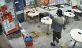 有片丨上水牛雜店持刀襲警天眼曝光 內地女狂砍警員從後制服