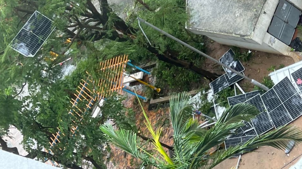 網上圖片所見,其中在孝廉樓的金屬太陽能板面積約數米乘數米,重逾數百磅,部分金屬架扭曲,而於天台尚未被吹走的太陽能板則顯得搖搖欲墜。