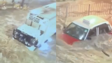 黑雨│的士被洪水圍困 遭水浪沖移漂浮變海盜船