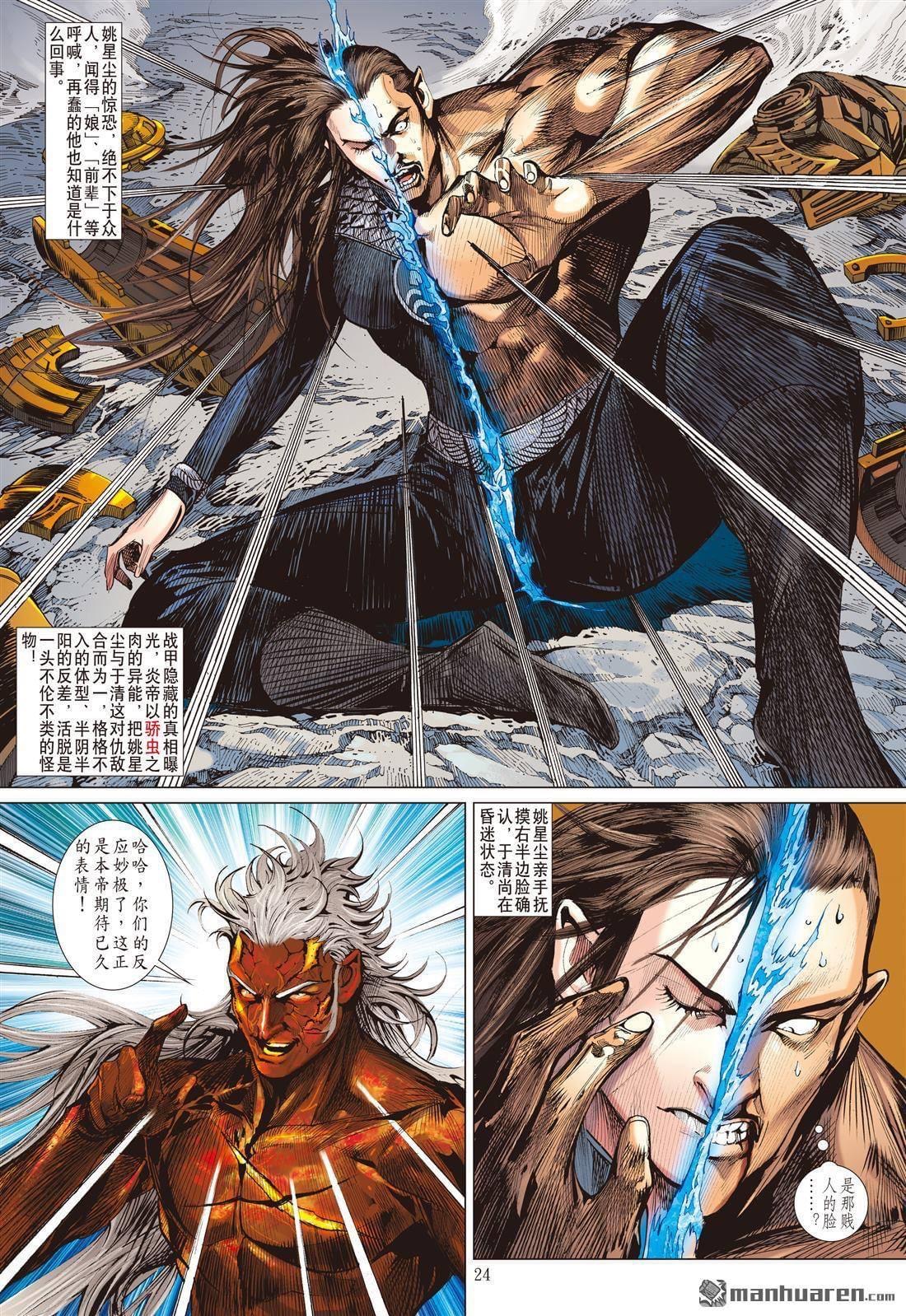 隨着故事情節的發展,姚星塵的頭號反派地位被炎帝取代,並被「神異創世計劃」改造成為與他的「情敵」、伯益的妻子于清合二為一的「怪人」,一個類似「修羅男爵」半男半女概念的角色。在這裡,可以理解為現代的跨性別人士,而這個時期的姚星塵,是一個比起之前更為扭曲、更加邪惡的角色,這時候也是其思想最痛苦的時期,尤其是他必須與憎惡的人連結成同一個人,因此絕大部分時間都是為了向伯益的「不念舊」報復。同性戀者或跨性別人士被描繪成邪惡、只能獲得不幸和痛苦的角色,就因為他們不是一個「完整的男人」,所以不會獲得異性戀直男的滿足感,也不會得到幸福,這一點可從姚星塵最後階段竟被「拗直」的節情可見一斑。他在故事中後段開始痛改前非,從歹角變成傾向正派的角色,這種轉變並不罕見,很多角色都是如此設定,因為「變好」而獲得「幸福」,也是漫畫常見的橋段。姚星塵首先獲得養子姚一烙,可享親子情,故事後段甚至被「拗直」,與一名女子媾好並生了孩子。同性戀者不值得成為獲得幸福的人,要獲得幸福,男性必須有一個傳統的、所謂完整的家庭,即擁有男女之間的性生活,這突顯了傳統漫畫創作者對同性戀的一定偏見。而男性同性戀者被貶抑為「非正常男性」,則是強化了「男性應當怎樣」的一種論述。