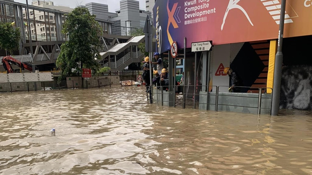 觀塘今早出現嚴重水浸。