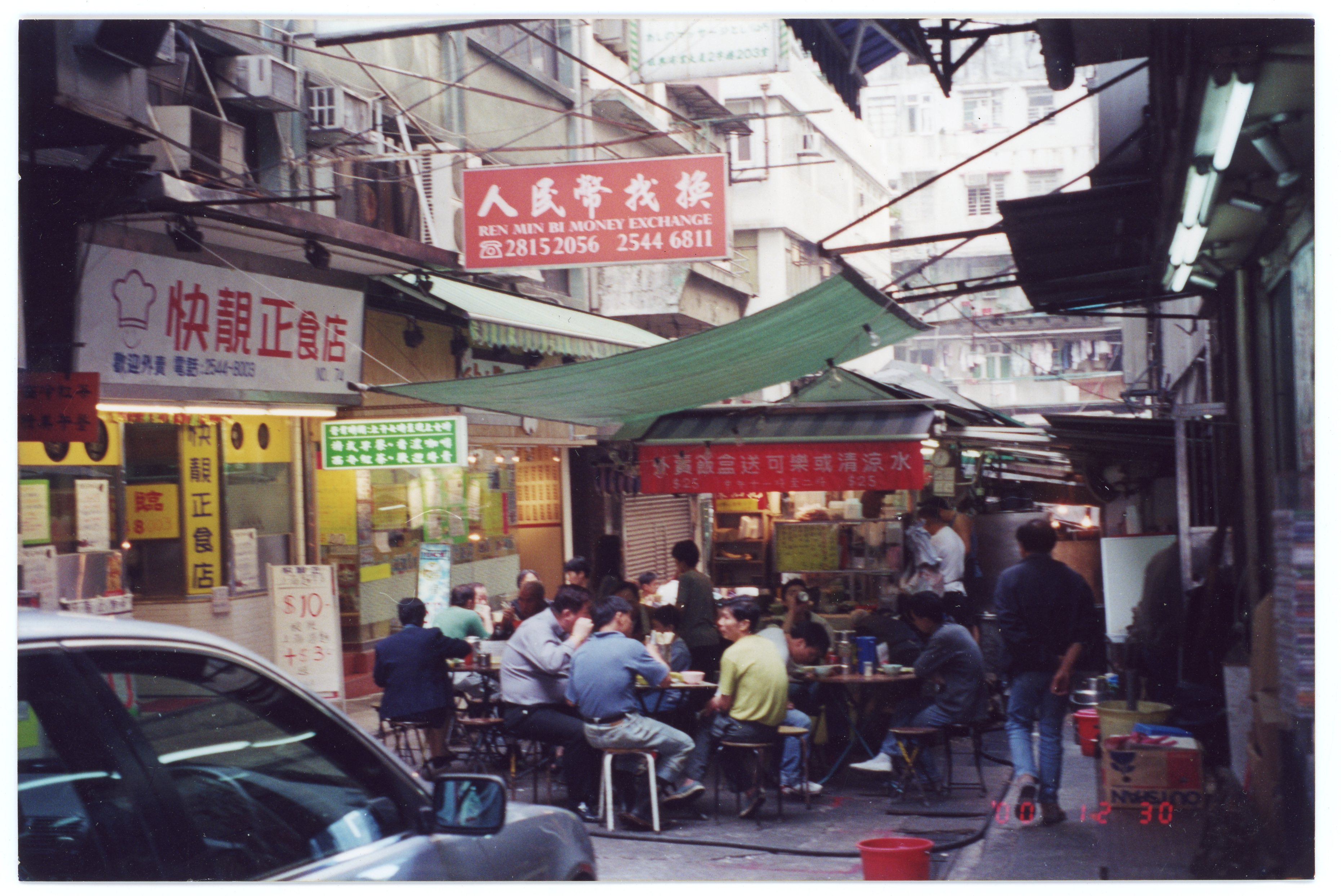 由閣麟街向西望位於中環士丹利街的大牌檔,2000年。