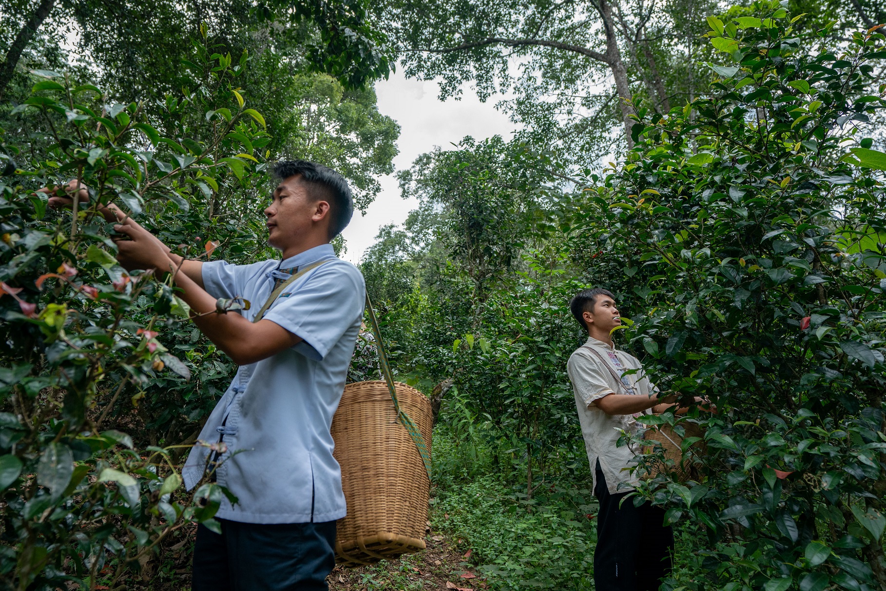 景邁山大平掌古茶林,傣族村民在採摘秋茶。