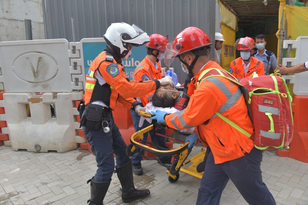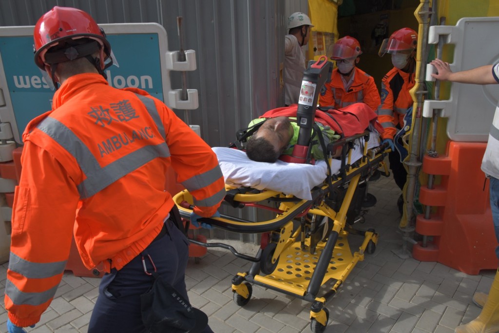 尖沙咀西九文化區地盤發生工業意外,消防員在地底救出兩名昏迷工人。