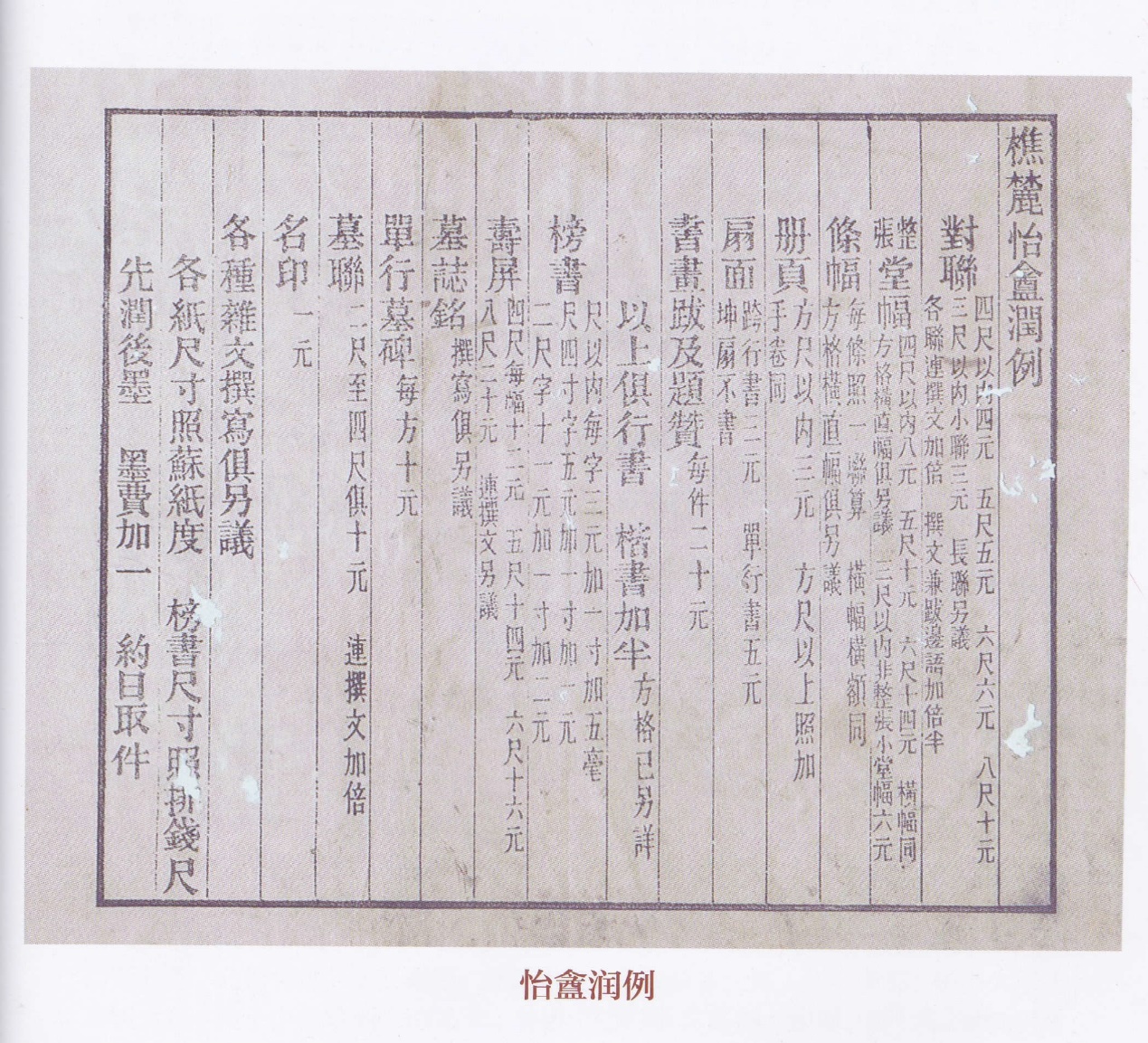 區大原太史自訂潤例,其中有墓誌銘、墓碑、墓聯三項,可見在香港這三種需求不少