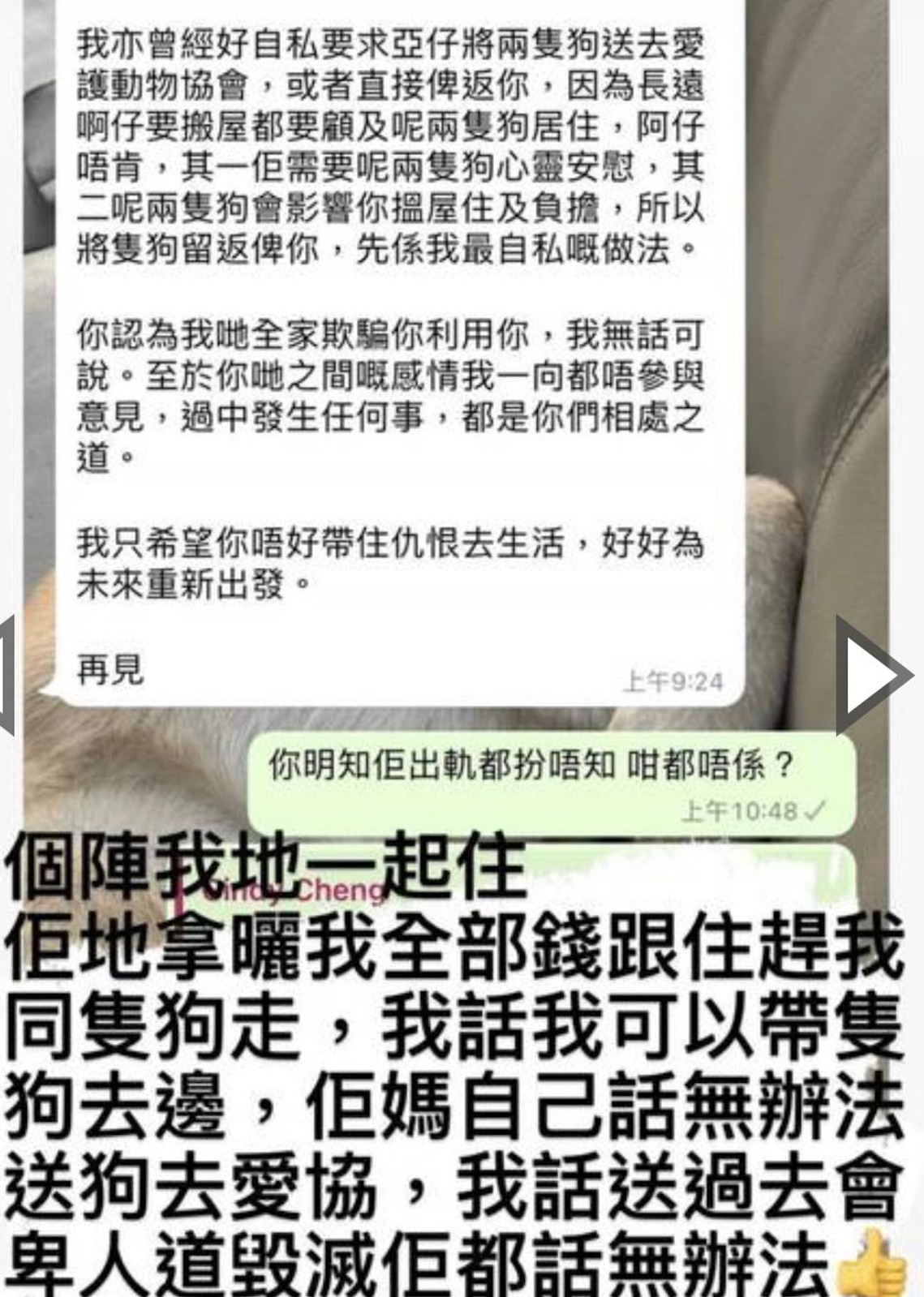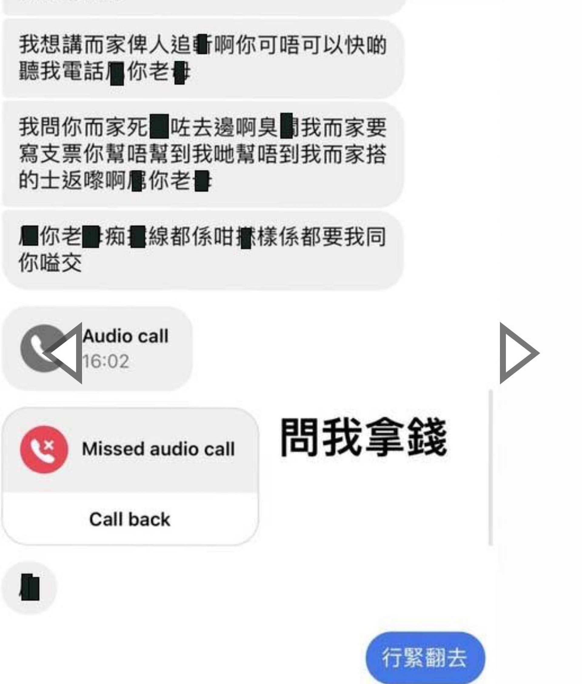 Niki公開渣男前度4宗罪,對話內容中其前度不斷用粗口鬧她。Niki表示位前度是她遇過最差的人,與他剛交往不久已經不斷被逼要求出售個人物業,讓他作投資,否則就會被冷落。第二點,男方不單止問她借錢,還會向她的朋友作出借錢的訴求,最後亦會借錢不還。第三點,男方曾經搶走她的銀行卡,然後向不同的人作出詐騙,並要求對方將款項入在她的銀行帳戶,令人誤會她與前度同流合污詐騙。第四點,男方與她交往前,已有伴侶,令她在不知情下慘變第三者!遇上如此一個「極品」男友,真是苦了Niki。