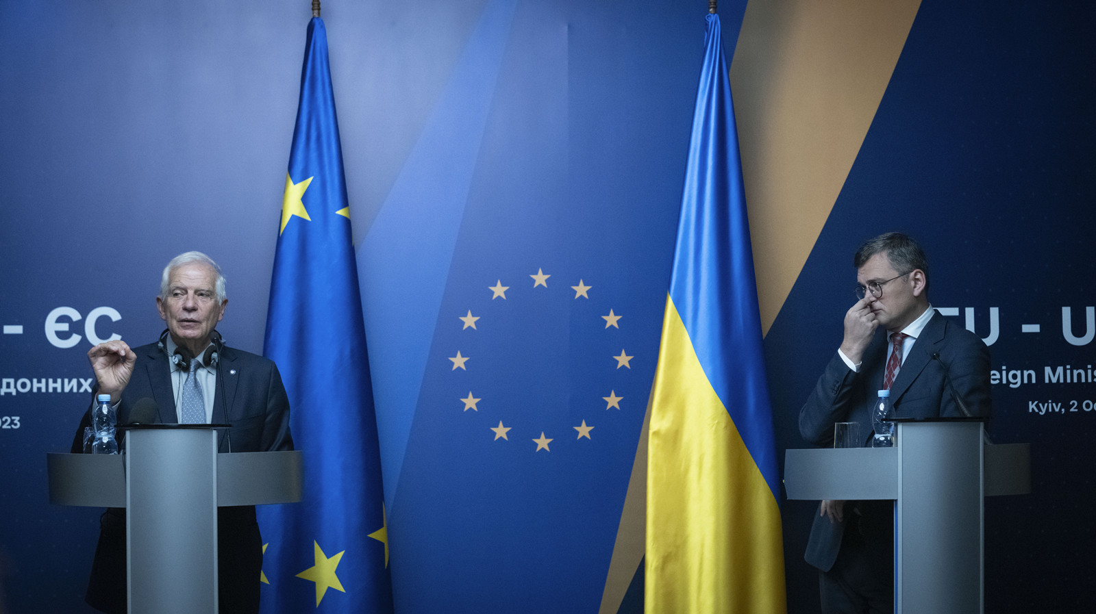 烏克蘭外長庫列巴(右)不認為已經失去美國支持,博雷利則表示已提出明年將向烏方提供高達50億歐元援助。