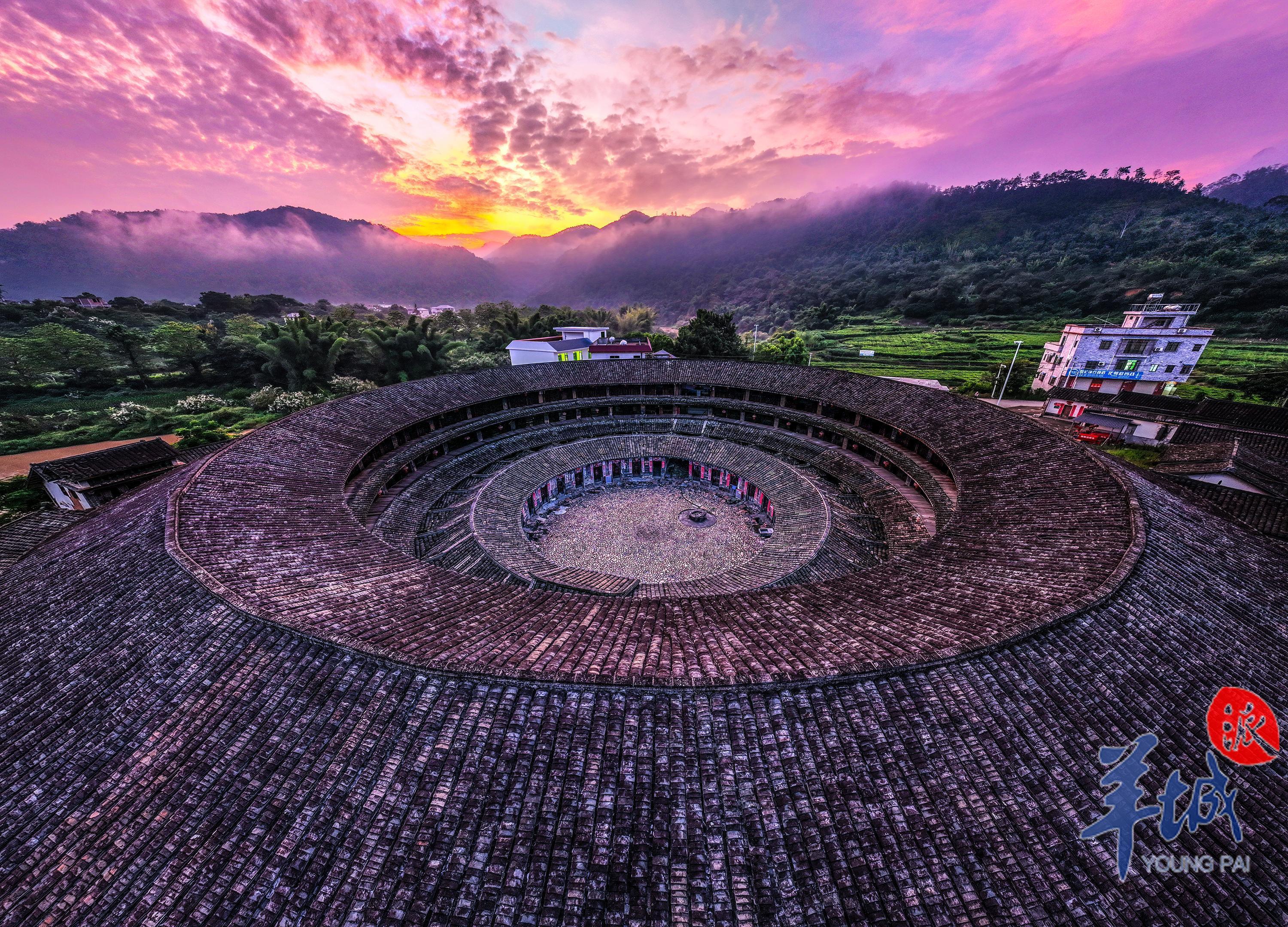 在廣東梅州的梅潭河旁有一座氣勢恢宏的圓形圍樓,土墻灰瓦、古意盎然,從空中俯視,形如花萼,融入青山秀水中。羊城晚報《大美嶺南》走進梅州大埔花萼樓,探訪百年來客家人篳路藍縷、聚族而居的故事。