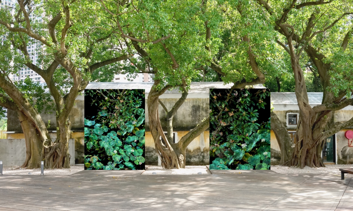 益隆爆竹廠不僅曾作為本地爆竹業的生產及工人居住場所,其土地上更生長著比爆竹廠歷史悠久的百年古樹。透過瓦拉創作的神秘而閃爍的自然動態影像,沉寂多時的爆竹廠被注入了新的活力,人類和非人類生命在此地共生共榮的歷史被激活、延續,跨越數十載甚至一整個世紀。