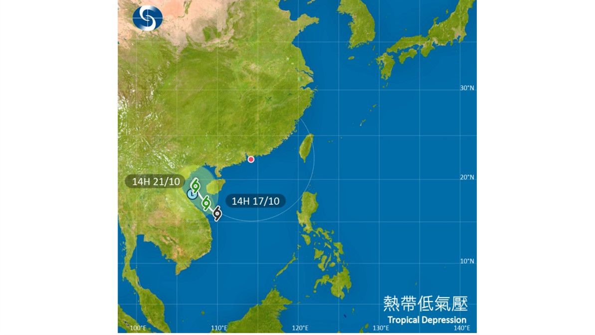 天文台表示在下午四時,位於南海中部越南附近的熱帶低氣壓集結在峴港以東約180公里,預料向西北緩慢移動,移向北部灣一帶。預測本港多雲,明日有幾陣驟雨,雨勢漸轉頻密,局部地區有雷暴,氣溫介乎23至26度。吹清勁偏東風,初時離岸吹強風,高地間中達烈風。同時受熱帶低氣壓的外圍雨帶影響,本港星期三及星期四多雲有驟雨,雨勢有時較為頻密,天氣較涼。