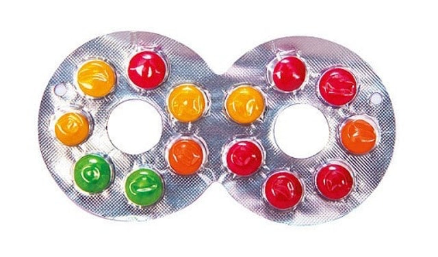 去士多時會看到繽紛樂、三角朱古力外,一定會看到眼鏡朱古力!朱古力會以一個「8」字造型為包裝,猶如一個眼罩甚或一副眼鏡,旁邊有多顆朱古力豆,隨時都可以「啪」出來吃,又可以當面具與朋友們玩耍,此等懷舊零食現時已難見蹤影!