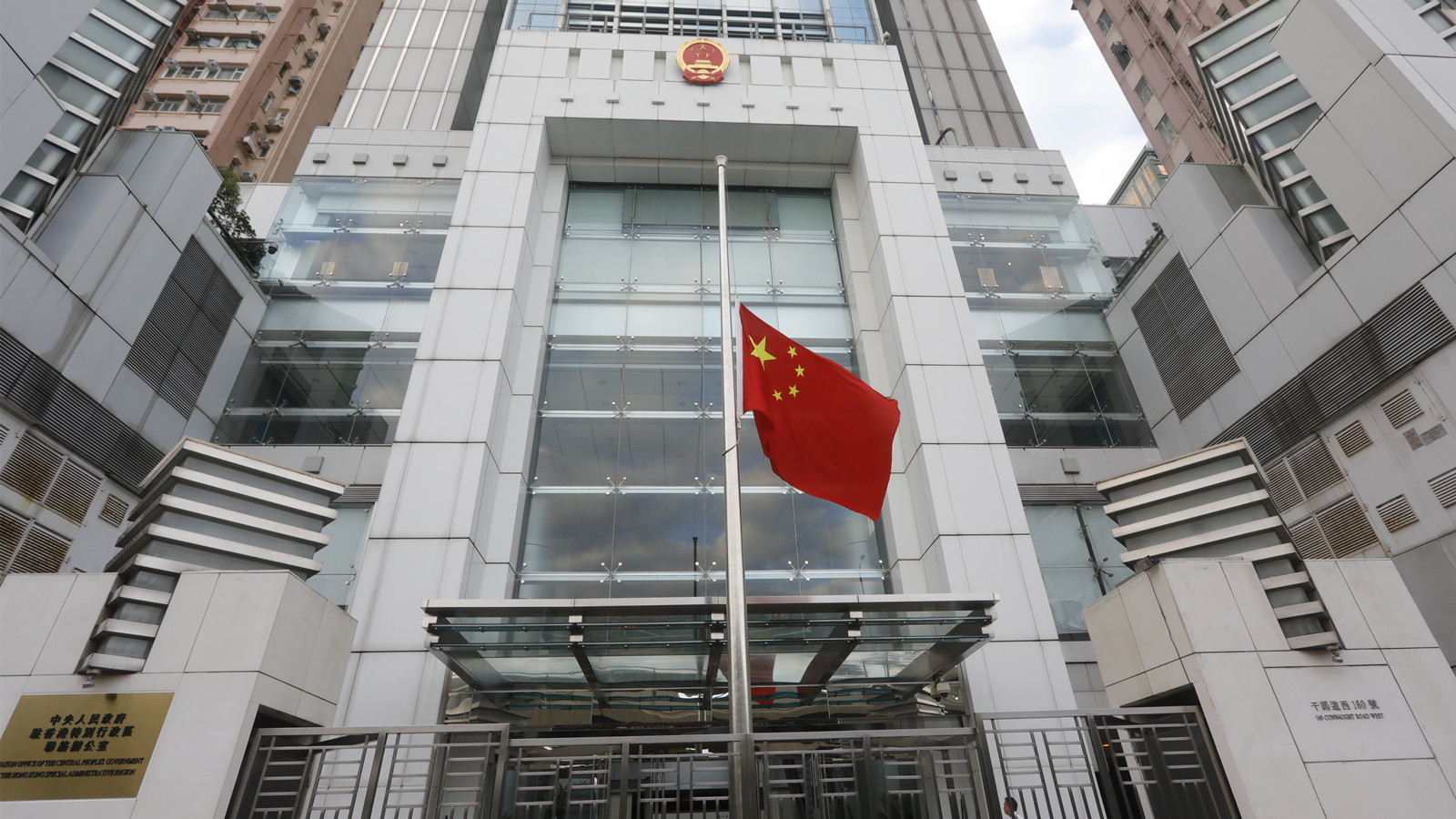 為悼念李克強同志,中央人民政府駐香港特別行政區聯絡辦公室早上下半旗誌哀。