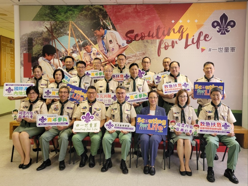黎偉生(前排中)指,香港童軍作為本港規模最大的青少年制服團體,培育良好公民是童軍的使命。