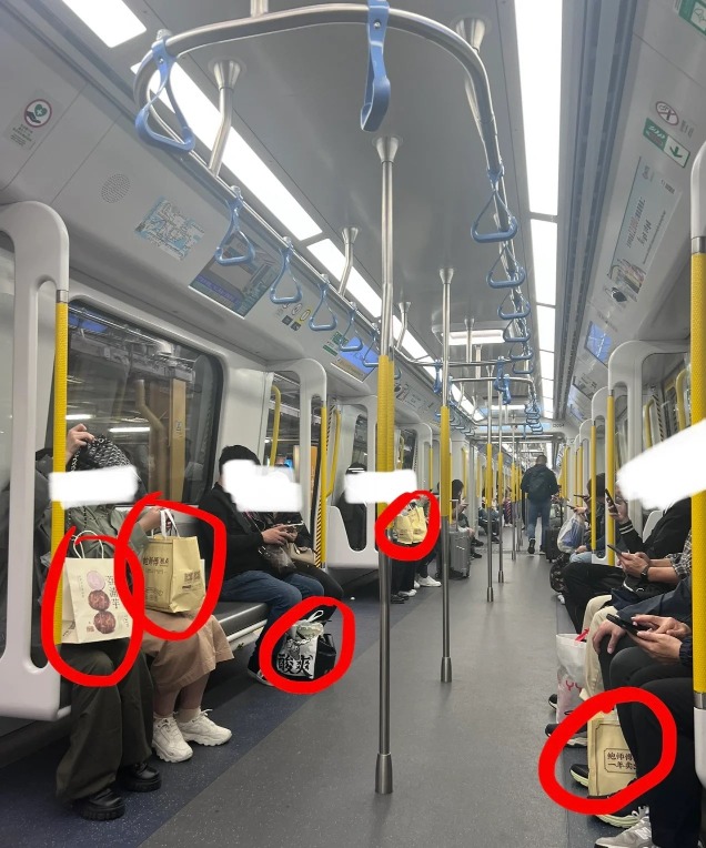 一張返港車廂內人手一袋鮑師傅的照片,在網絡上流傳甚廣。網上圖片