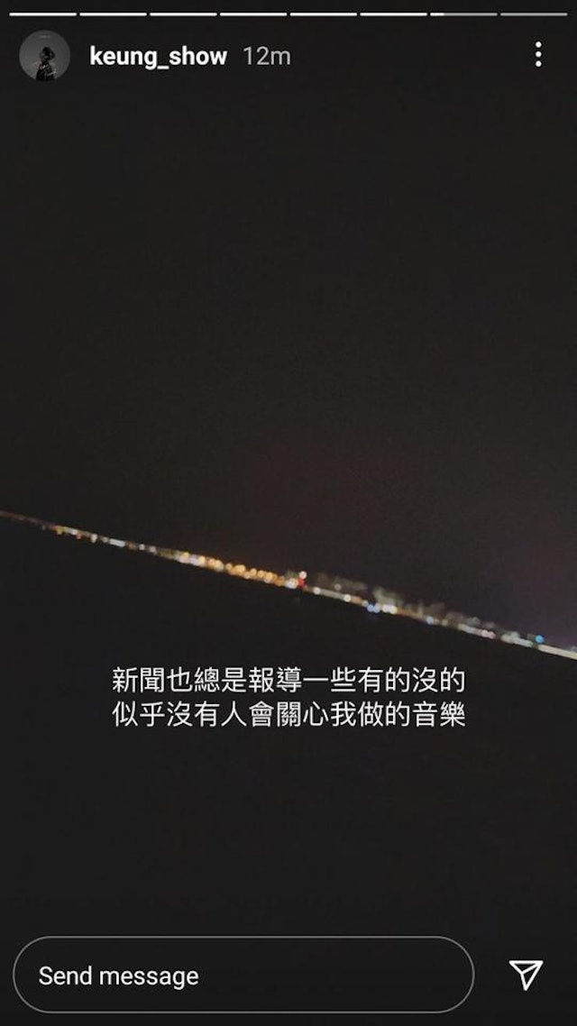 不久後,姜濤已刪除「似乎沒有人會關心我做的音樂」,改用《碧咸傅》呻心境(圖:keung_show @IG)