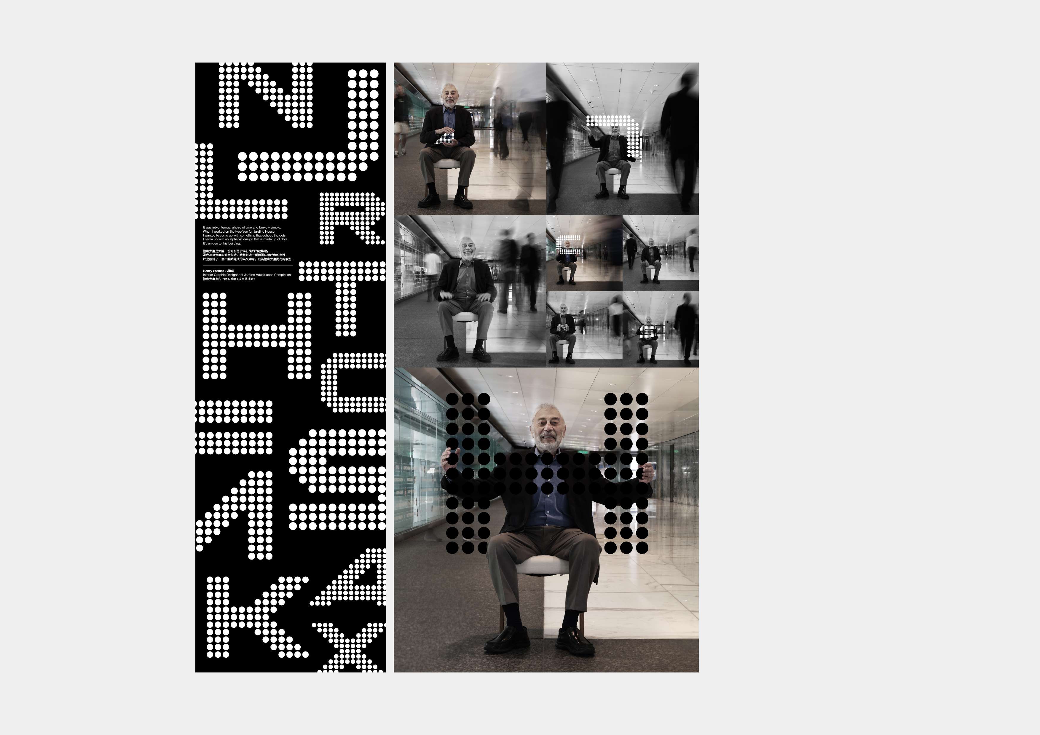 另一展覽「怡和大廈50前行——又一山人攝影日常」展覽,於怡和大廈地下舉行,由著名藝術家又一山人 (Stanley Wong) 策展。又一山人熱愛香港人文風貌,一直以各種藝術形式表現香港文化的多元和生動。在是次展覽中,他以鏡頭捕捉多位與怡和大廈息息相關的合作夥伴、租戶和員工與怡和大廈的相伴時光,包括怡和大廈建築師、平面設計師,大廈落成以來長期租戶、置地資深員工等,每張照片都蘊含著與怡和大廈相關的獨特故事和特殊情感,透過1,748扇玻璃圓窗回顧大家奮發圖強的初心,與未來可期的盼望。