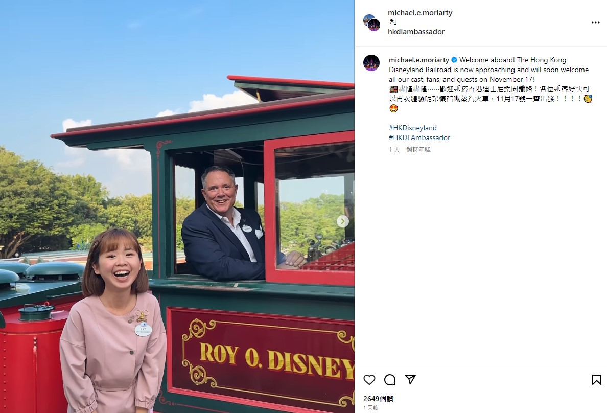 香港迪士尼樂園行政總裁莫偉庭宣佈將於11月17日重新開放迪士尼蒸汽火車!(圖:michael.e.moriarty @IG)