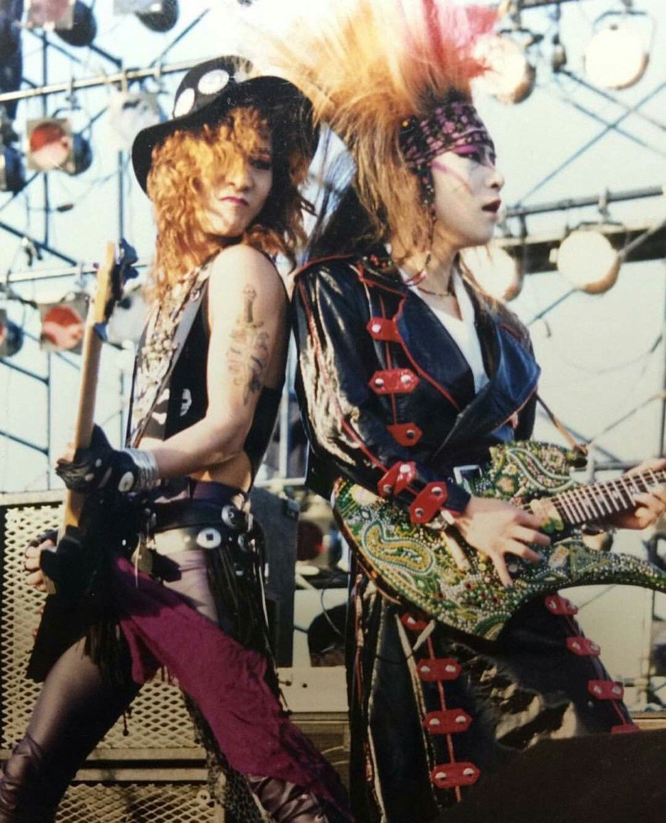 X JAPAN先後有成員離世,1998年離世的結他手HIDE(右)及1991年離世的低音結他手TAIJI(左)(圖:JjangJjangMan Bangtan@Pinterest)