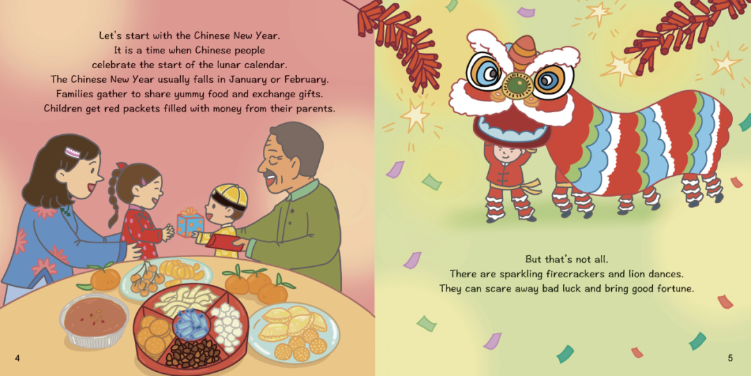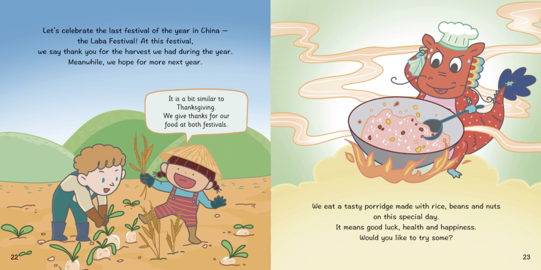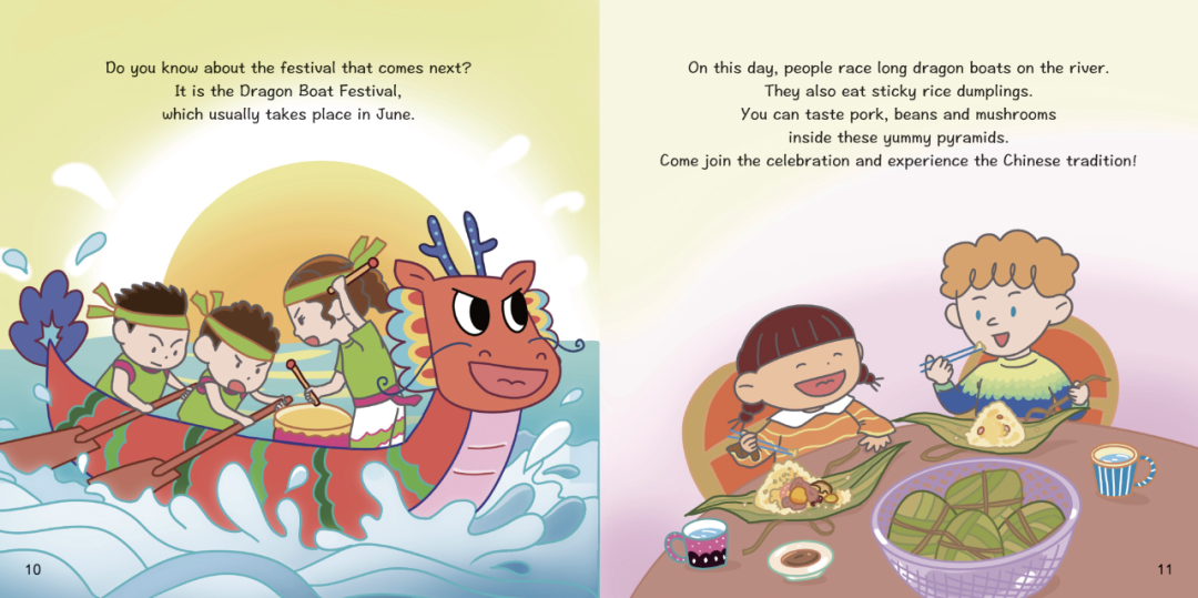 接下來是Chinese Festivals一書,新一年將至, Charlie和Ying Ying一起倒數送舊迎新,突然Dragon C出來了!Dragon C帶着兩位小主角認識中國傳統佳節,從喜喜洋洋的農曆新年、五月初五的端午節,至祈求豐收的臘八節,也囊括其中。中國還有哪些特色節慶?齊來閱讀本書,尋找答案。