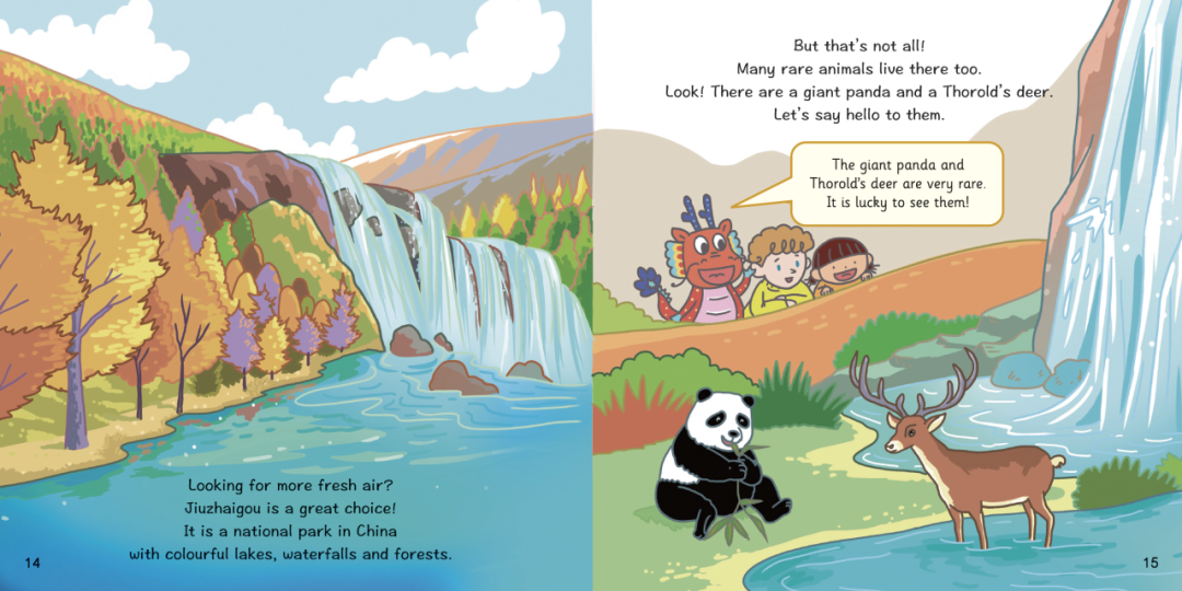 在Chinese Animals一書中,Charlie和Ying Ying這對好朋友相約郊遊,卻在樹林發現了來自中國的Dragon C,更獲Dragon C邀請他們一起去欣賞漂亮的中國動物。一路上,三人遇上中國國寶大熊貓、有「長江女神」美譽的白鱀豚、奔放曠達的藏野驢……中國的野生動物豐富多樣,孩子豈能錯過?