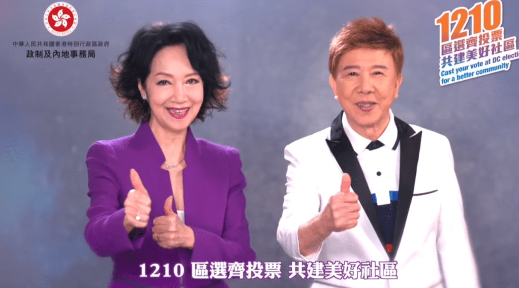 【橙訊】區議會選舉將於下月10日舉行,有「光B」、「廟街歌王」之稱的資深歌手尹光,近日現身在政制及內地事務局的宣傳片中,身穿禮服與藝人謝雪心一齊呼籲選民投票。