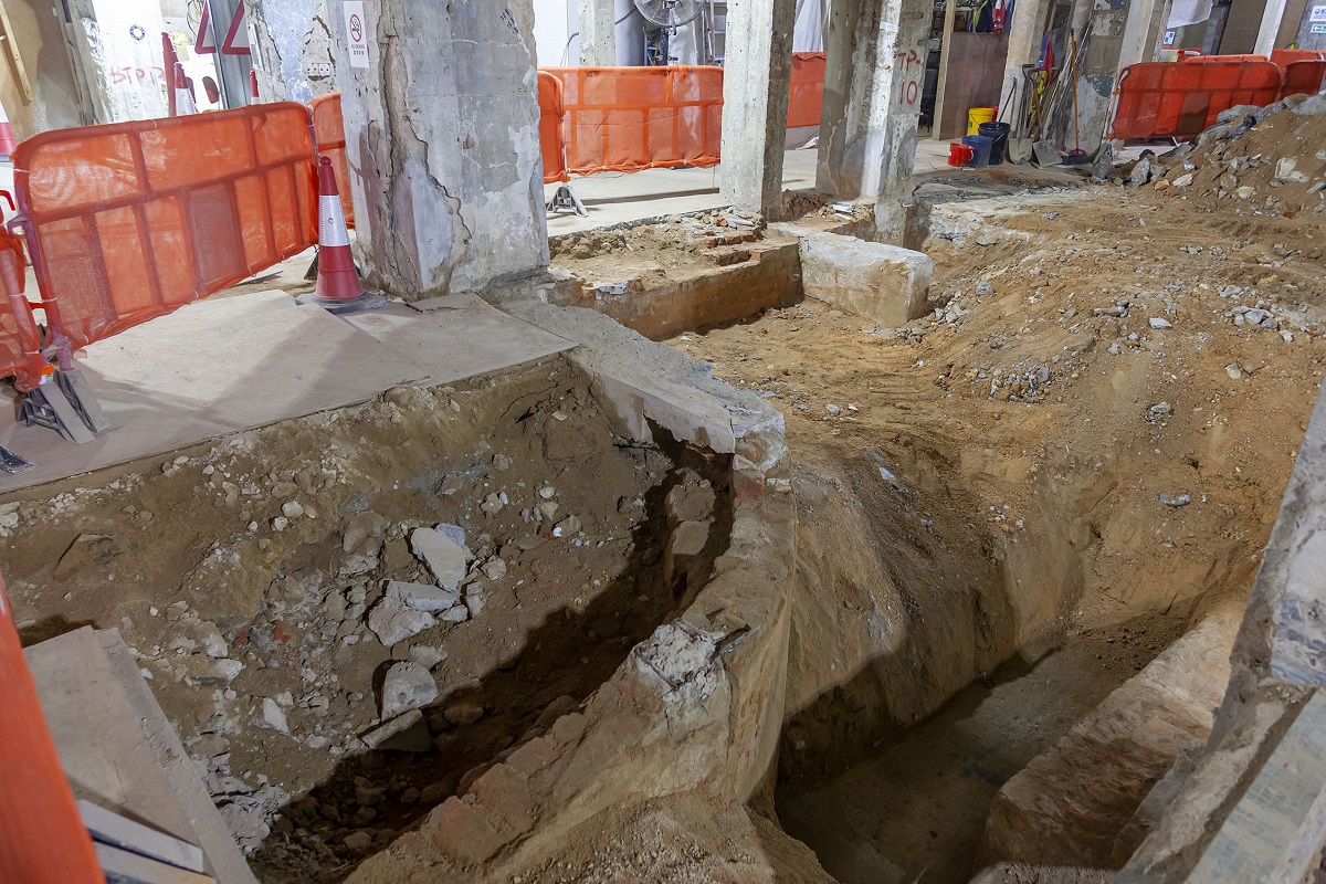 保育團隊在地基某處發現一節彎曲牆壁,翻查當年圖則,正是「璇宮樓」夜總會的建築遺跡。