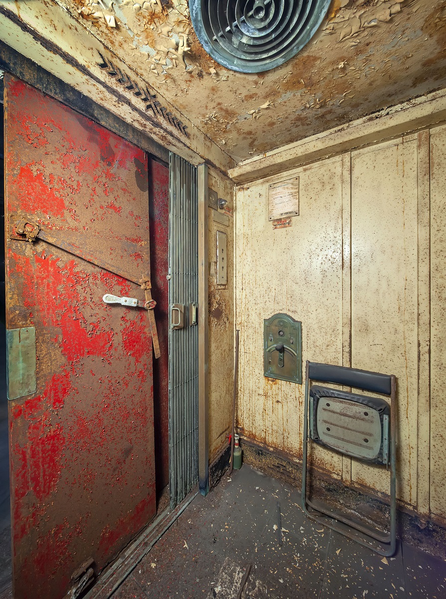 在皇都戲院三樓超等座旁的梯間,發現一部奧的斯手動升降機。