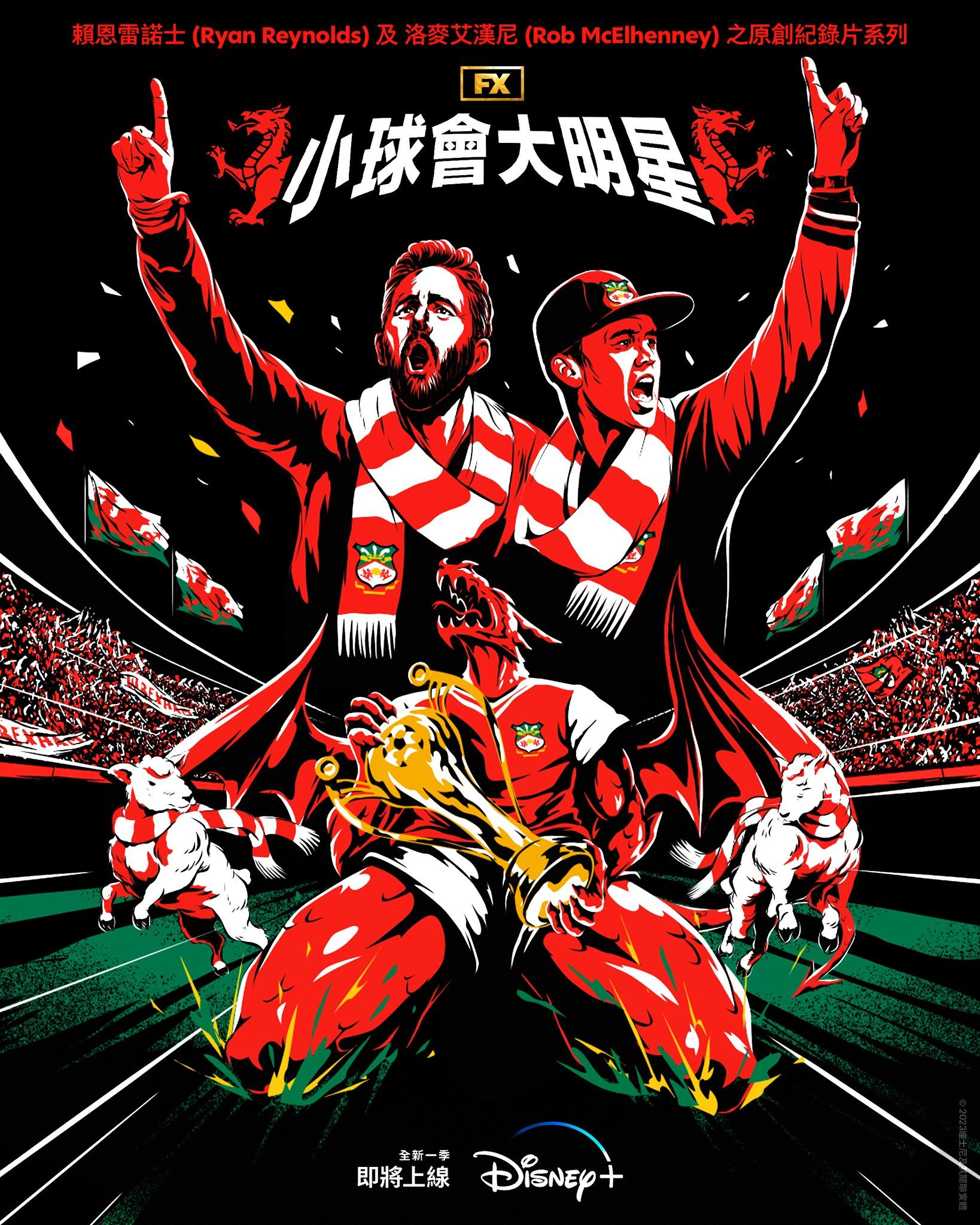 【橙訊】艾美獎提名大熱作品、講述賴恩雷諾士(Ryan Reynolds)與洛麥艾漢尼(Rob McElhenny)與球會「紅龍」域斯咸(Wrexham)故事的原創紀錄片系列《小球會大明星》(Welcome to Wrexham)第三季確認於2024年Disney+獨家上線。